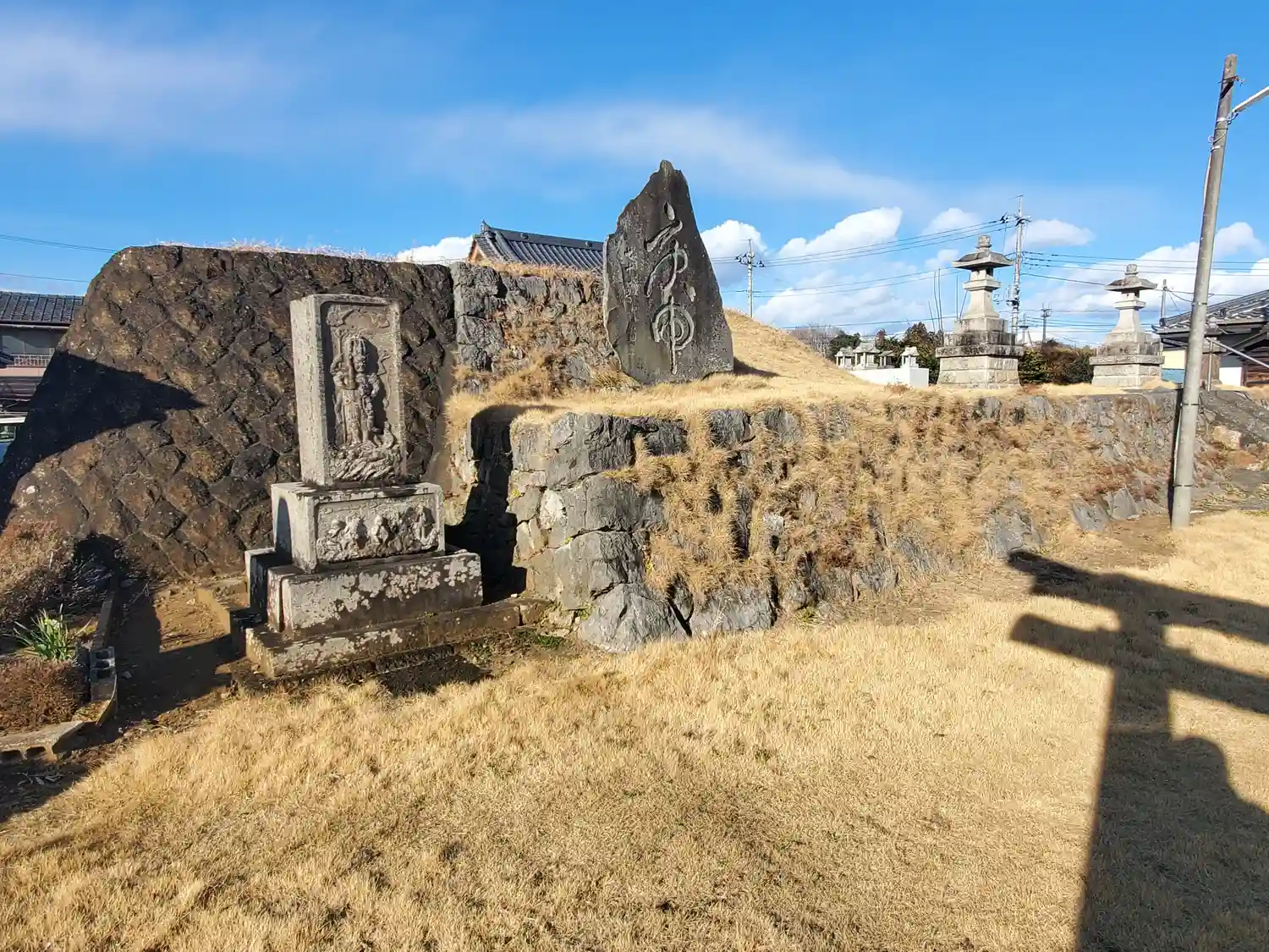 伝承上では鎌倉時代に赤見城の供物を埋めて築かれた塚ですが、考古学上は古墳だそうで、皮肉にも大震災の崩落でそれまで知られていなかった石室が露出し、大刀や馬具など複数の遺物が出てきたそうです😳