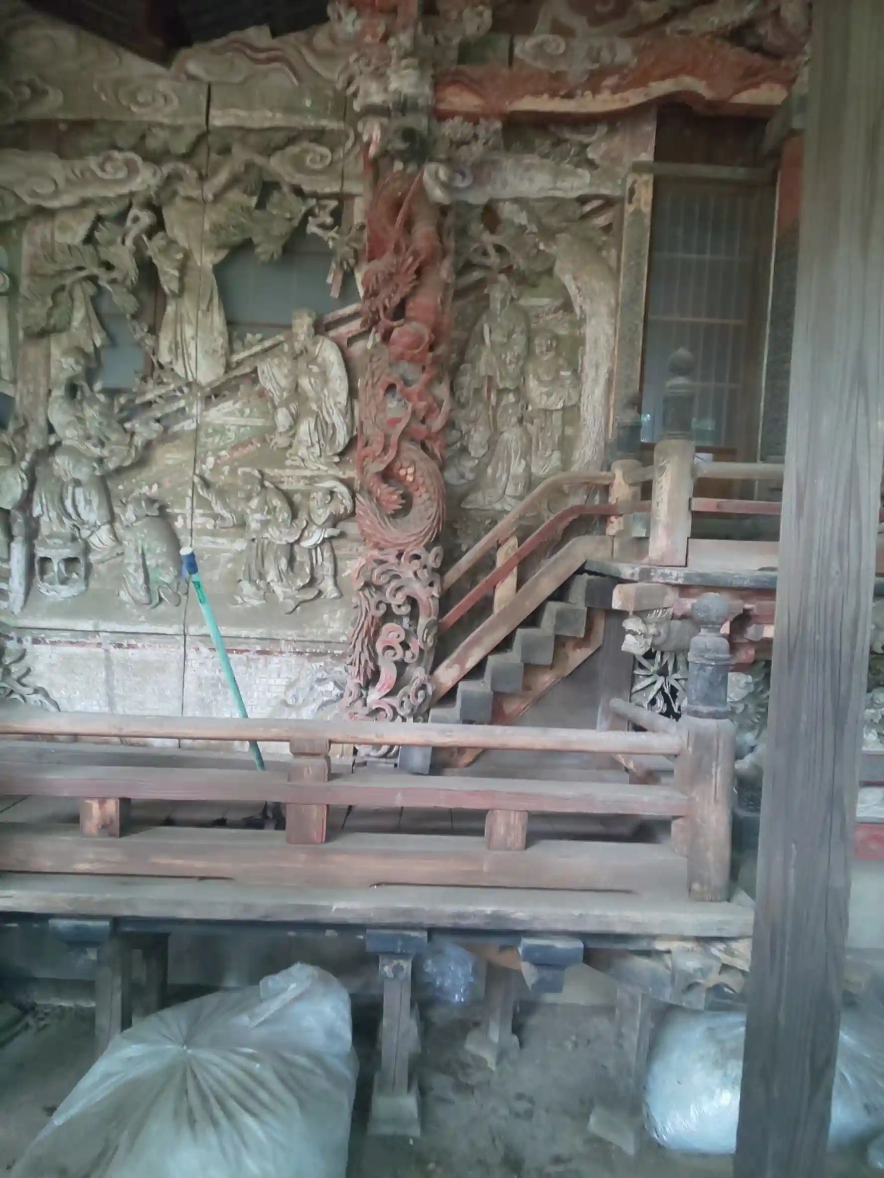 本殿の周りには素晴らしい彫刻が飾られていて、特に赤い昇り龍・降り龍は素晴らしかったです。でも・・・本殿のゴミは・・・たまたまなのかもしれませんが・・・