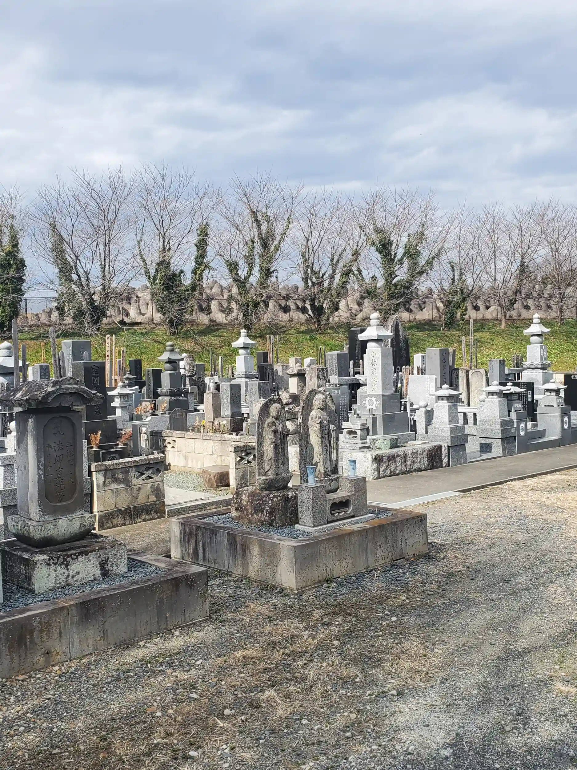 ちなみに墓地横の高台に国交省の河川防災ステーションがあって、凄まじい数のテトラポッドが積まれてます