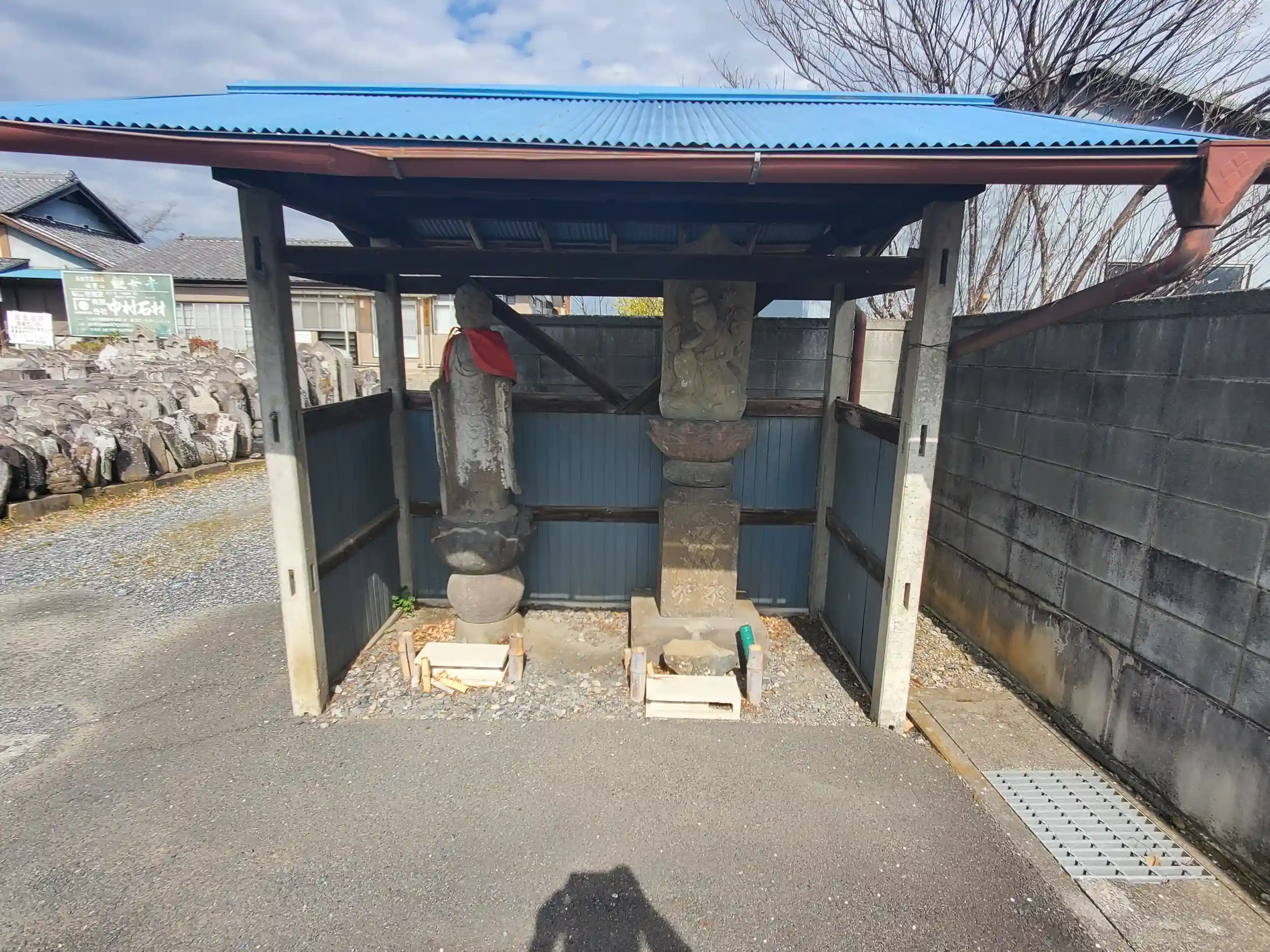 参道の突き当たりに覆い屋付きの仏像