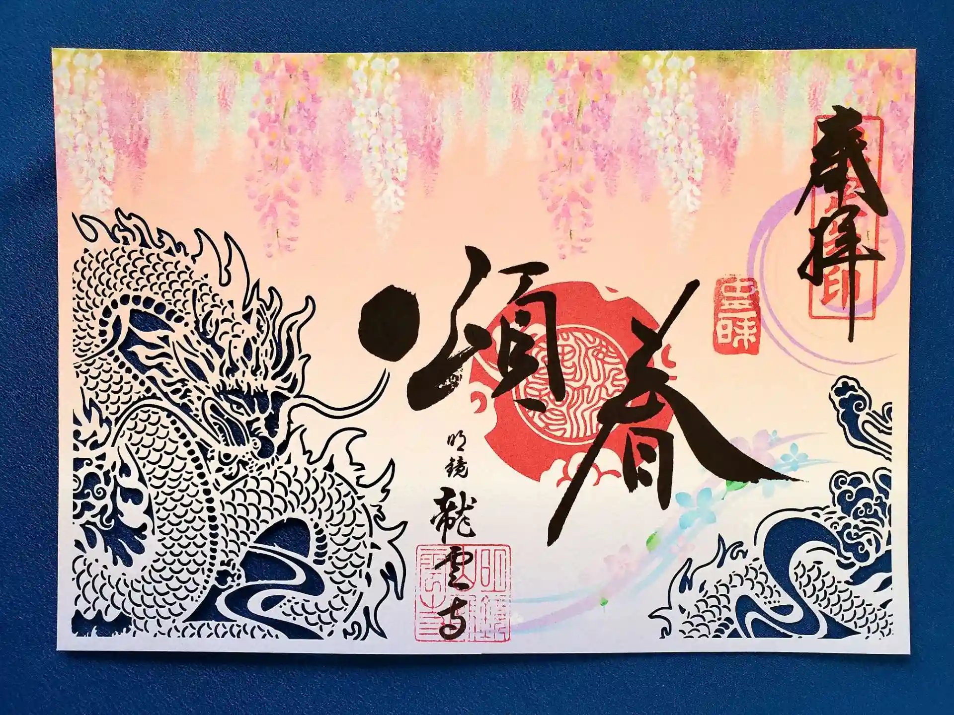 龍雲寺様の「藤龍切り絵御朱印」とオリジナル御朱印帳を送っていただきました😊