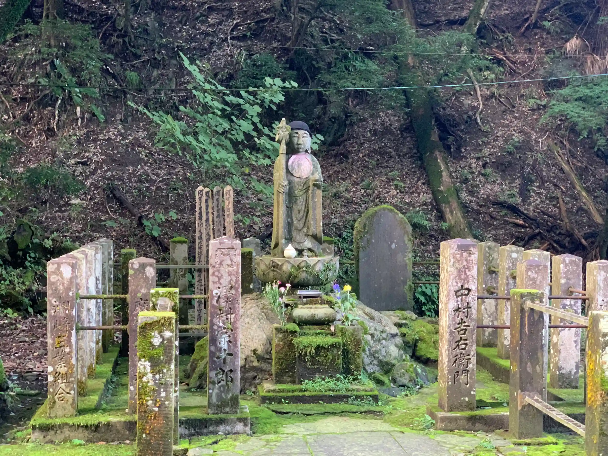 勝道上人が開山したお寺。出流川の源流部のうっそうとした自然林や、杉木立に覆われた渓間にある出流山千手院満願寺は、新義真言宗智山派で、坂東33ヶ所霊場の第17番札所になっています。寺伝によれば、当山は日光輪王寺を開いた勝道上人により、天平神護元年(765年)に開山されたと言われています。そのため、日光の修験者は年中行事の一つとして必ずここで入峰の修行を行なったそうです。