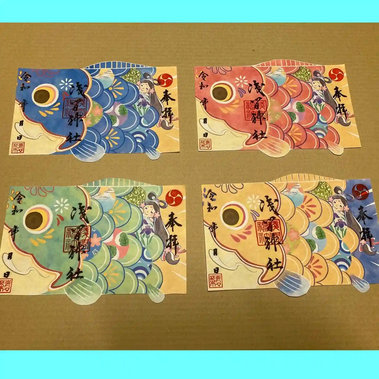 鯉のぼり🎏が元気良く泳ぎ過ぎて、ヒレが和紙から飛び出してしまいました😂
