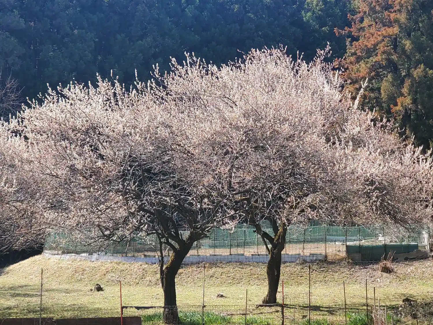 横に梅林があってちょうど満開だった😆