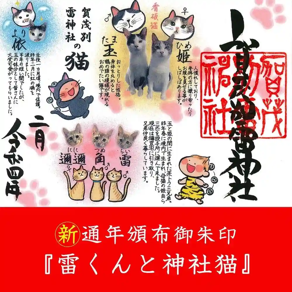 1月22日から新しく通年で頒布する、雷くん御朱印のご案内です。『雷くんと神社猫』当社で活躍する猫さんたちは雷くんととても仲良しです。