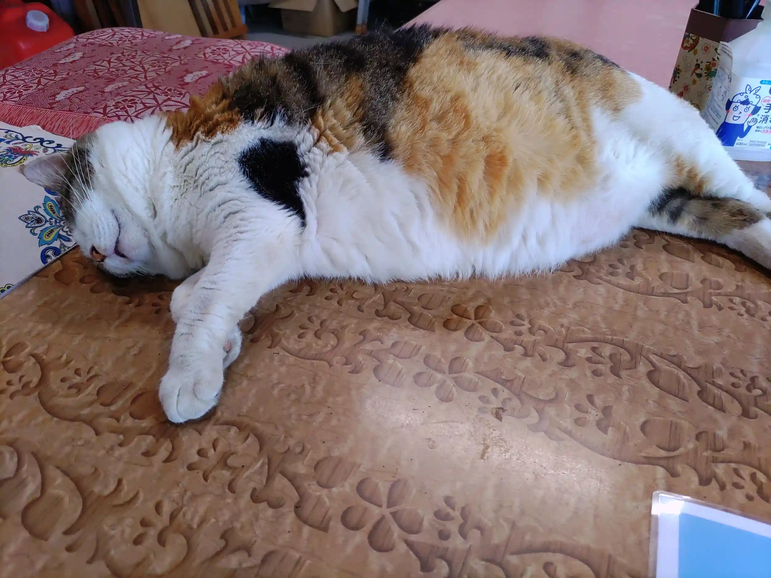 たまちゃんは社務所でお昼寝、ヒメちゃんは休憩所でお昼寝とみんな涼しい場所でねんねしていました。