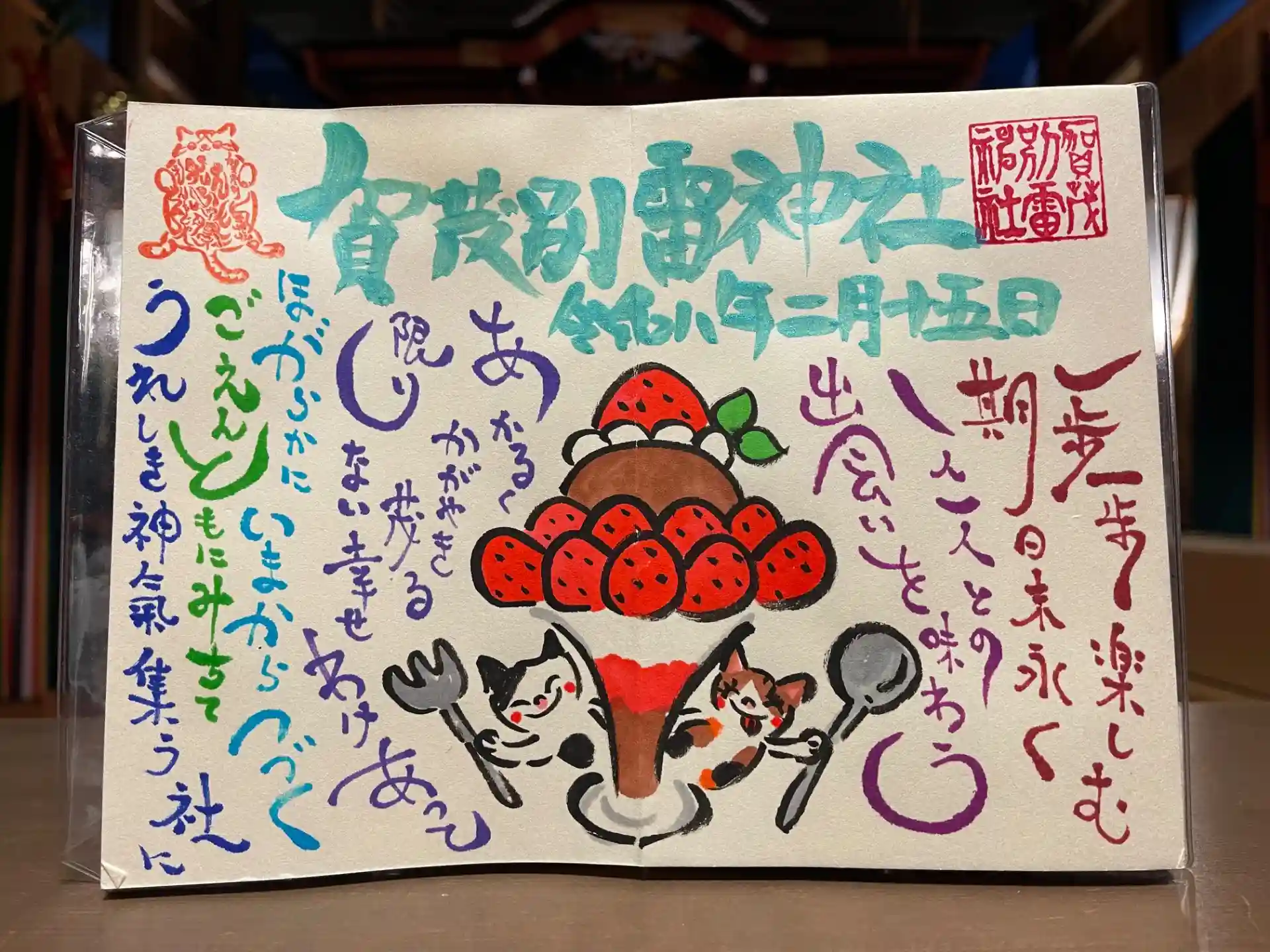 社殿にお上り頂き、お祓いを受けて頂いた方に限り、当社とえんもじやさんのコラボ御朱印をお書き致します。