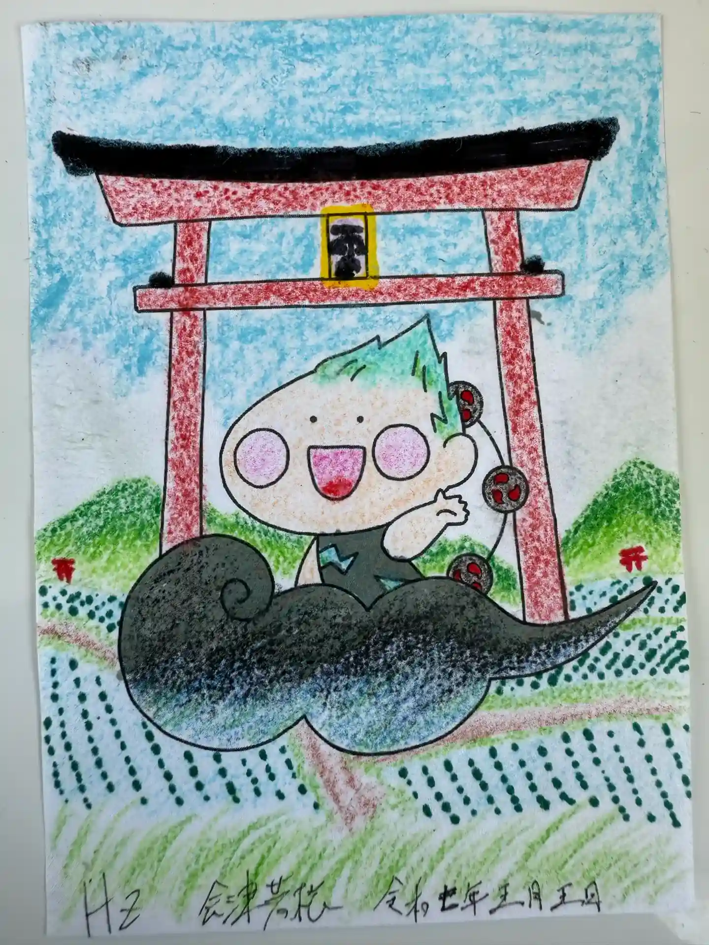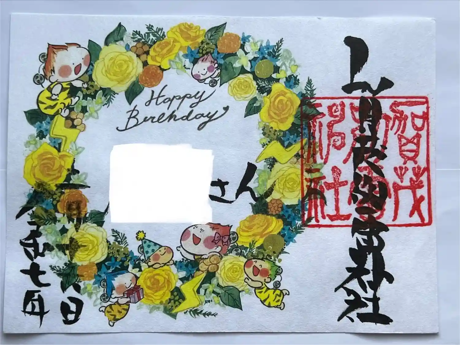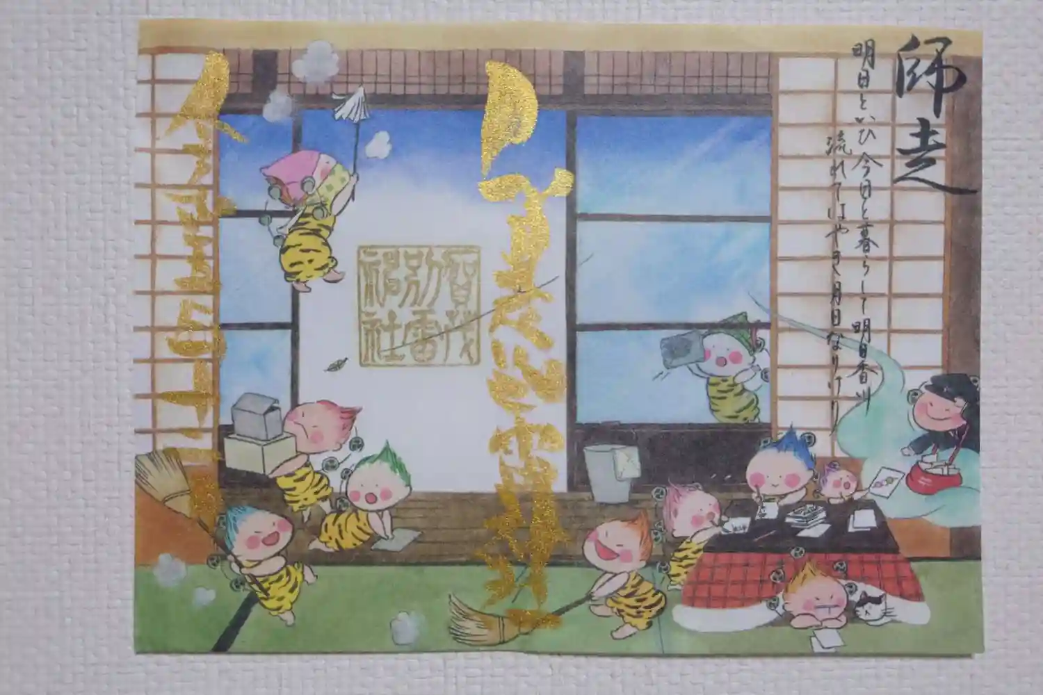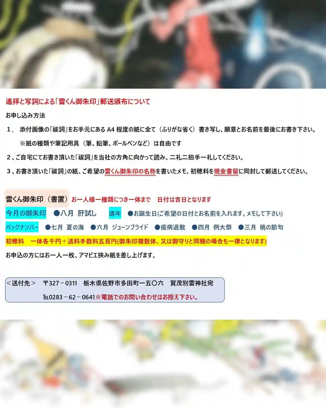 当社オリジナル御朱印「雷くん」を日本画家の先生に描いて頂き一年が経ちます。記念に原画を拝殿内に掲示…