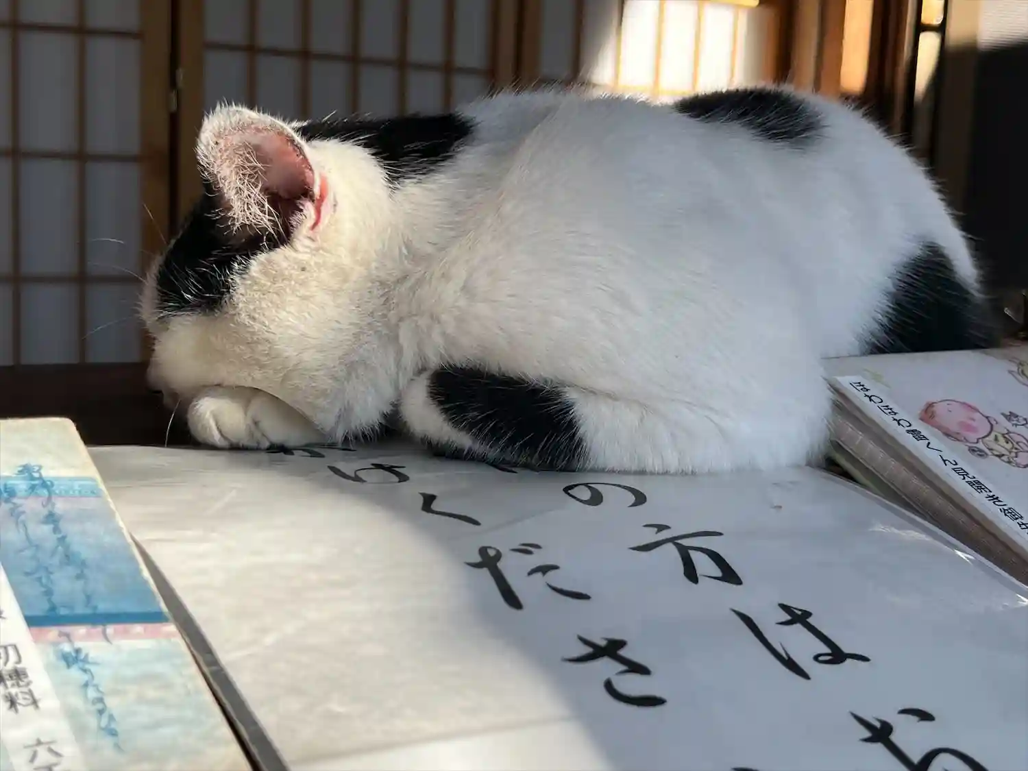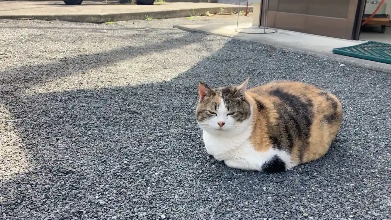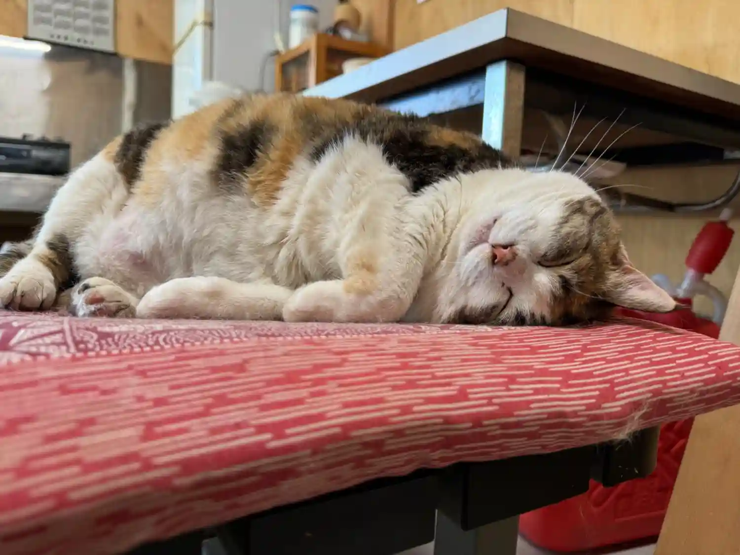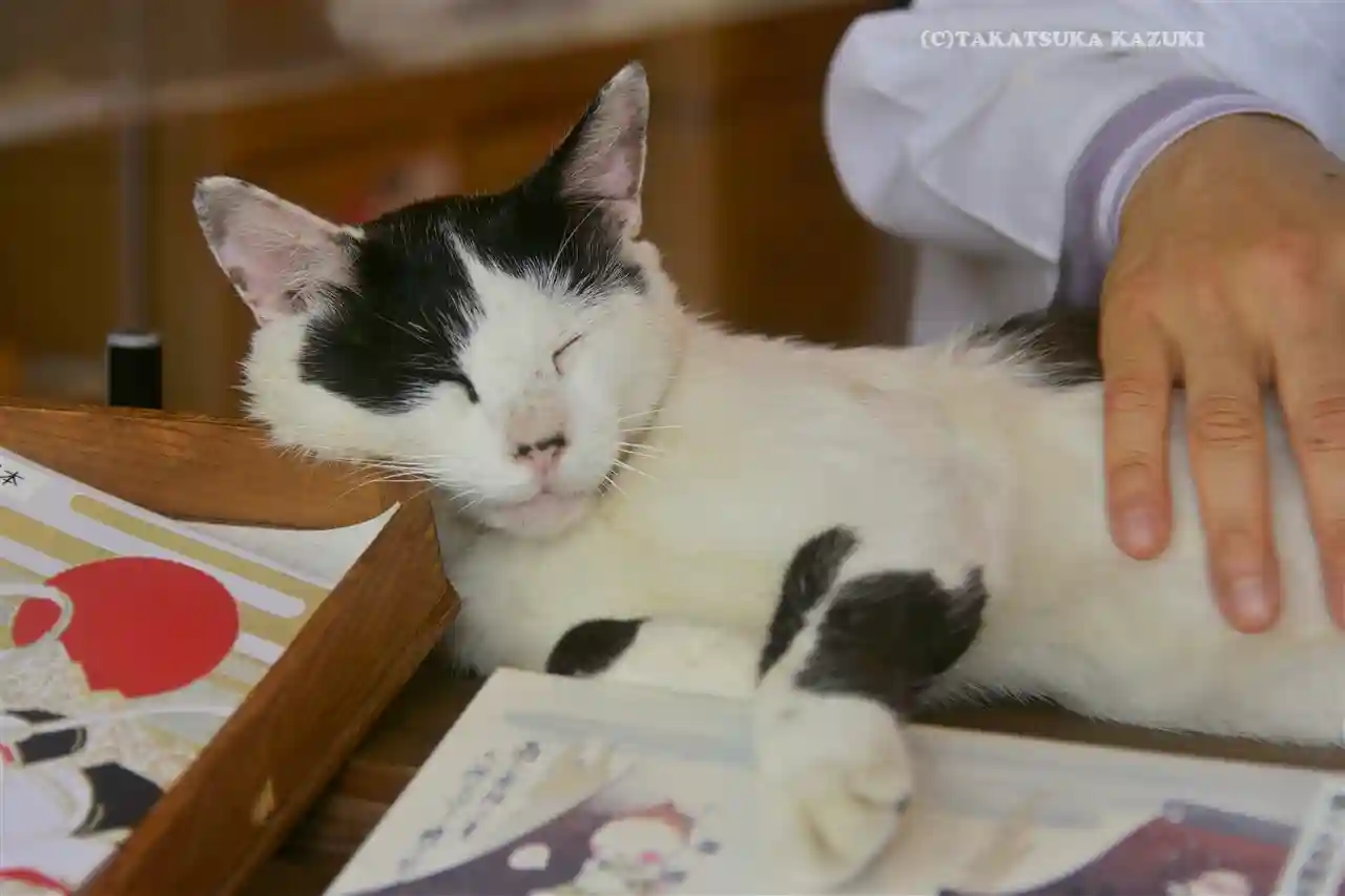 姫ちゃん。一日働いてお疲れのご様子。話しかけたら薄目を開けて、「ニャー」。