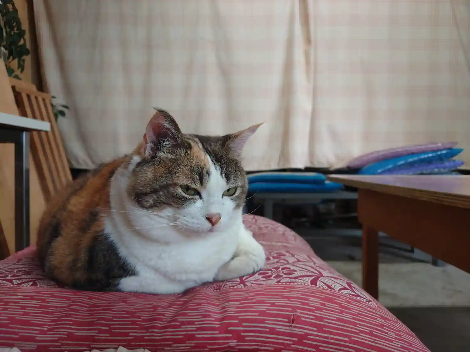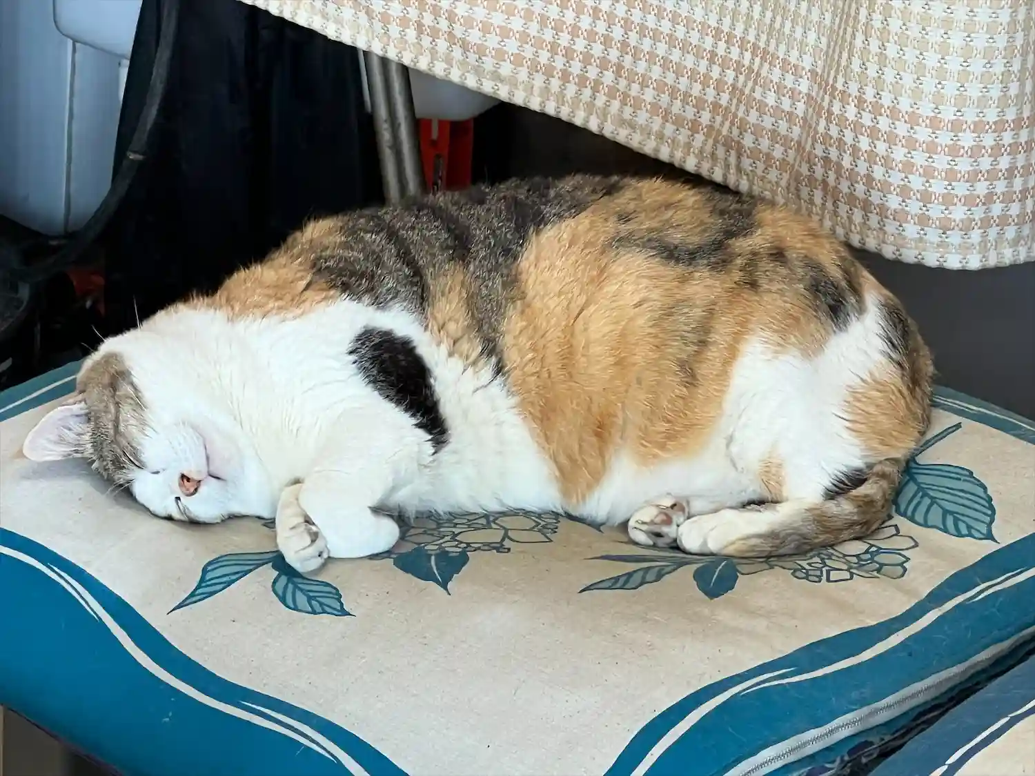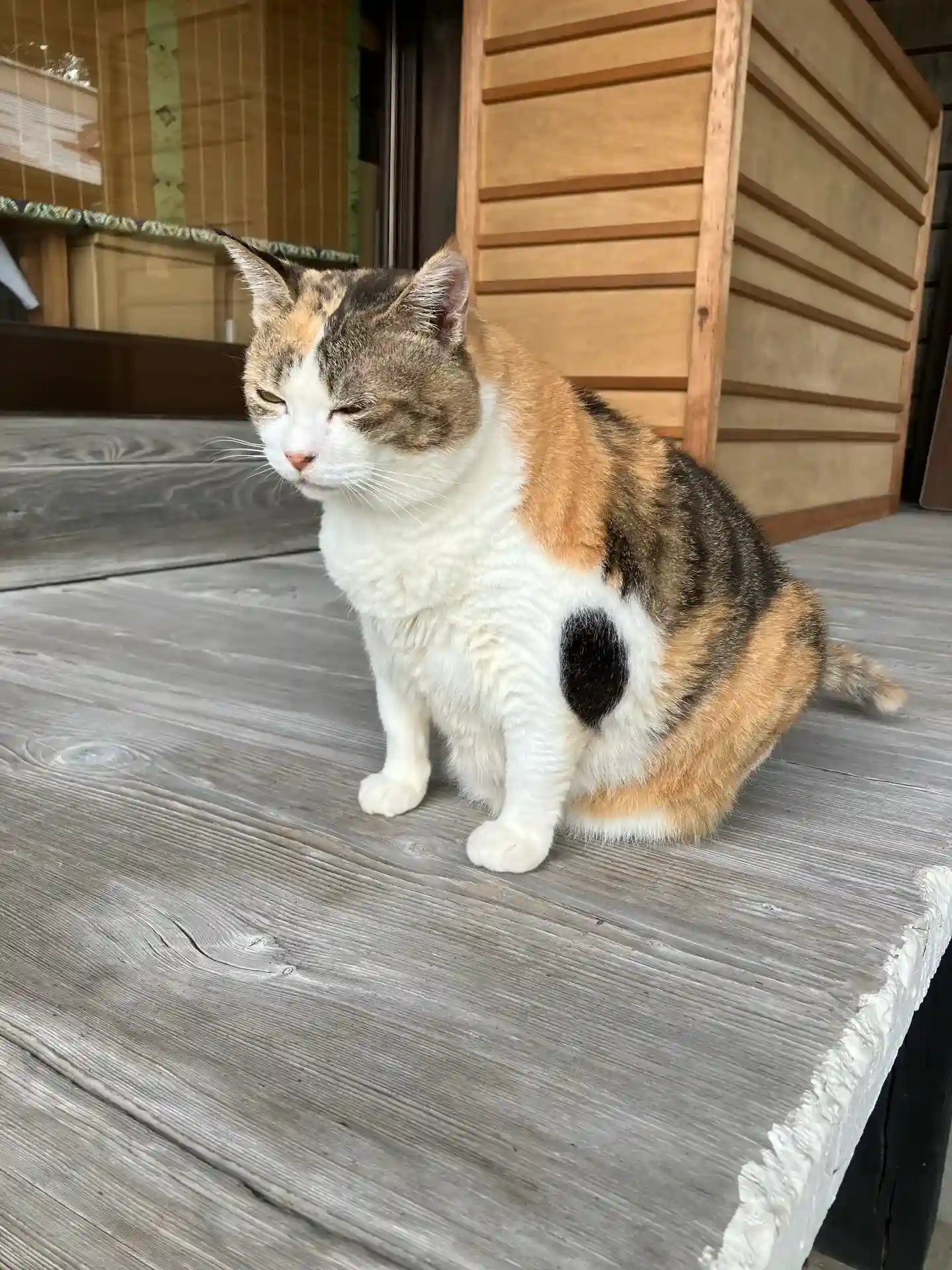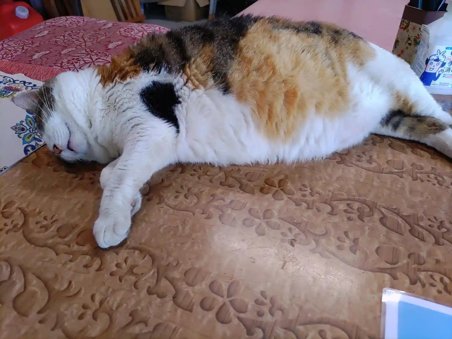 姫ちゃん。一日働いてお疲れのご様子。話しかけたら薄目を開けて、「ニャー」。