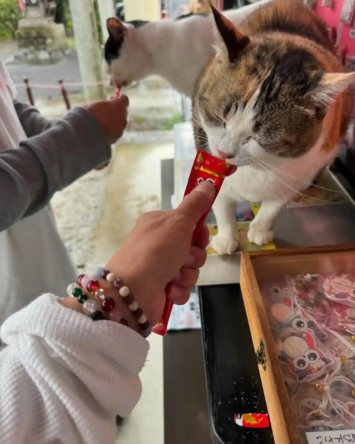 参拝者が絶えずやって来ていて、参拝者のためにコーヒーも…