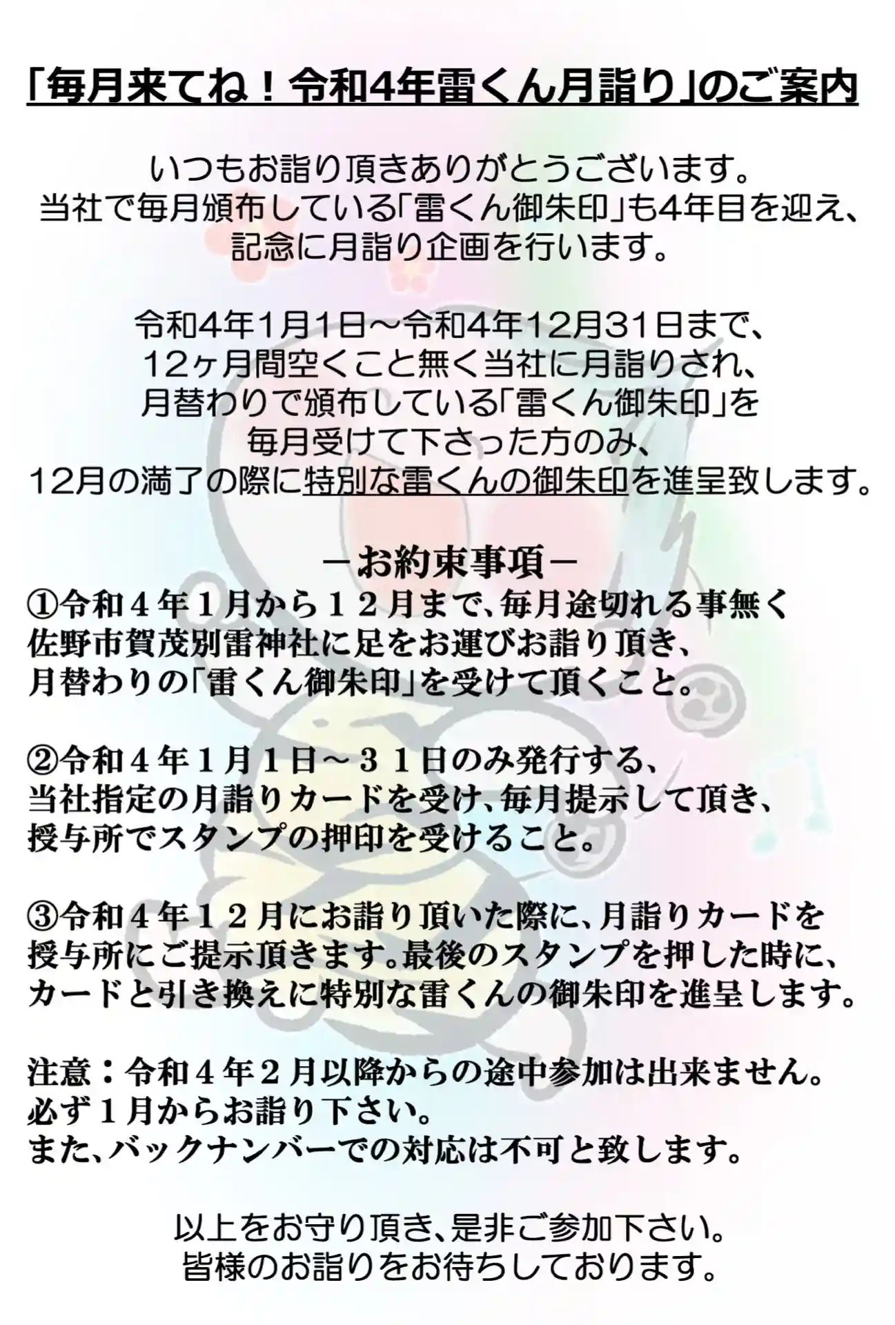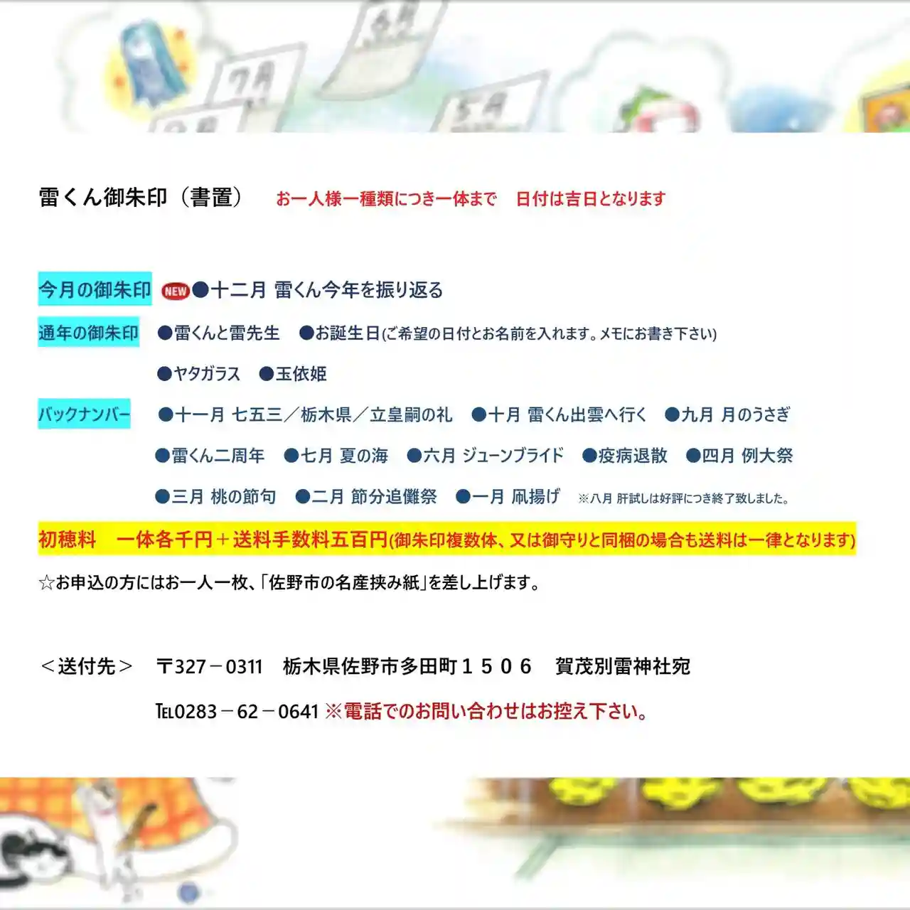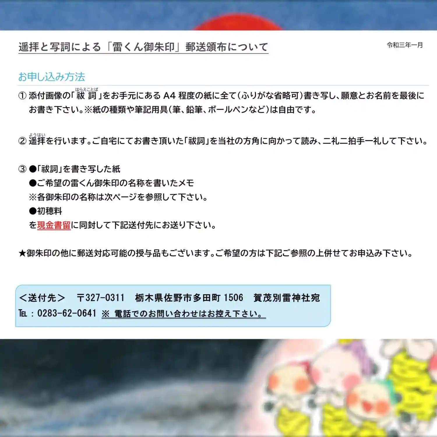 令和三年元旦より頒布する、当社オリジナル『ぷくぷく(福福)雷くん御朱印帳』を受けて頂きました方(※…