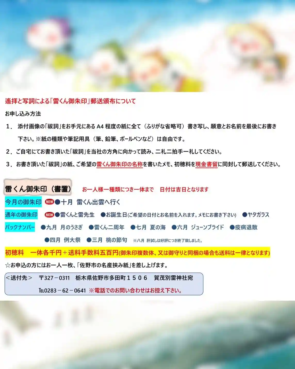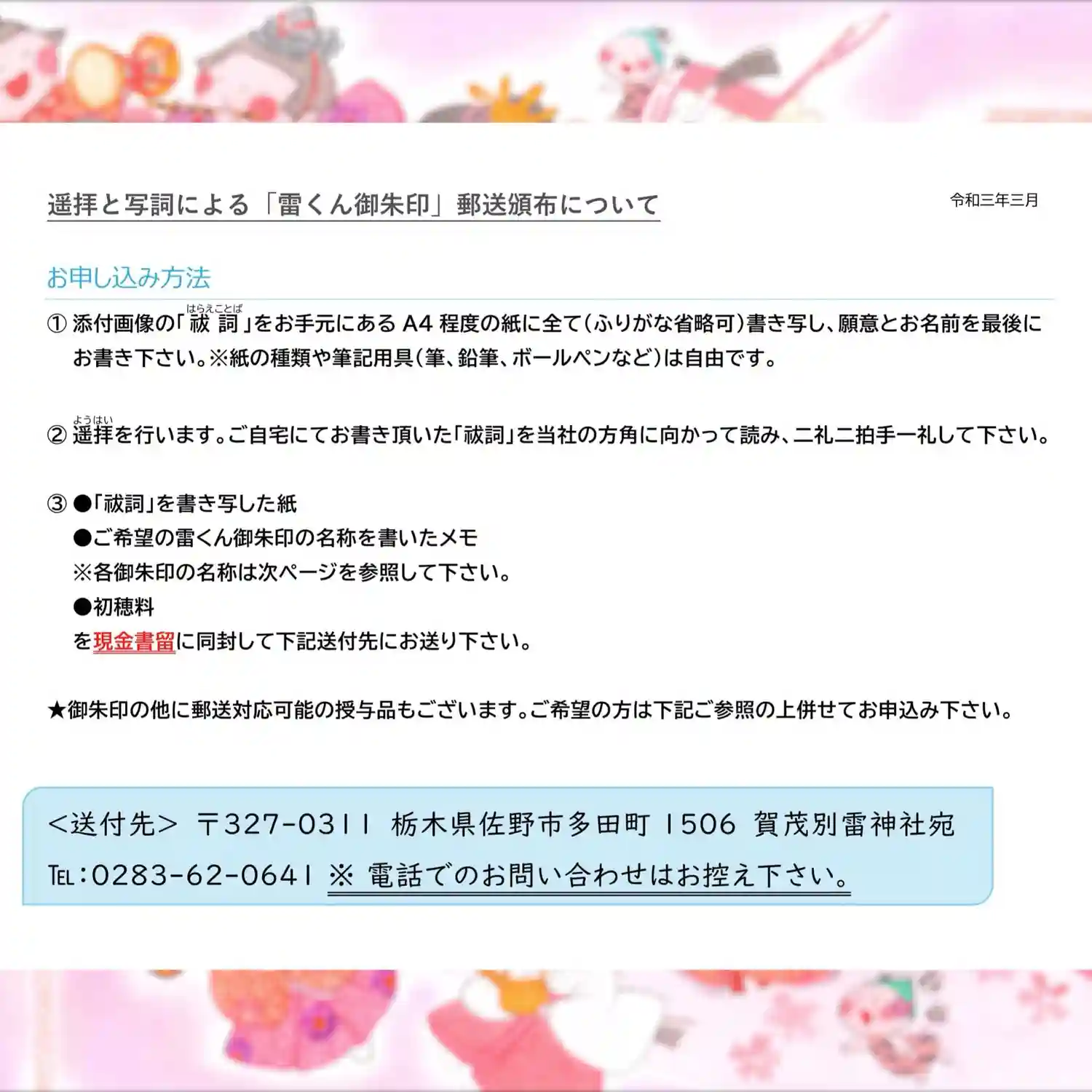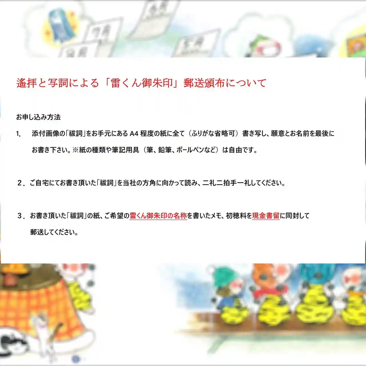 令和三年元旦より頒布する、当社オリジナル『ぷくぷく(福福)雷くん御朱印帳』を受けて頂きました方(※…