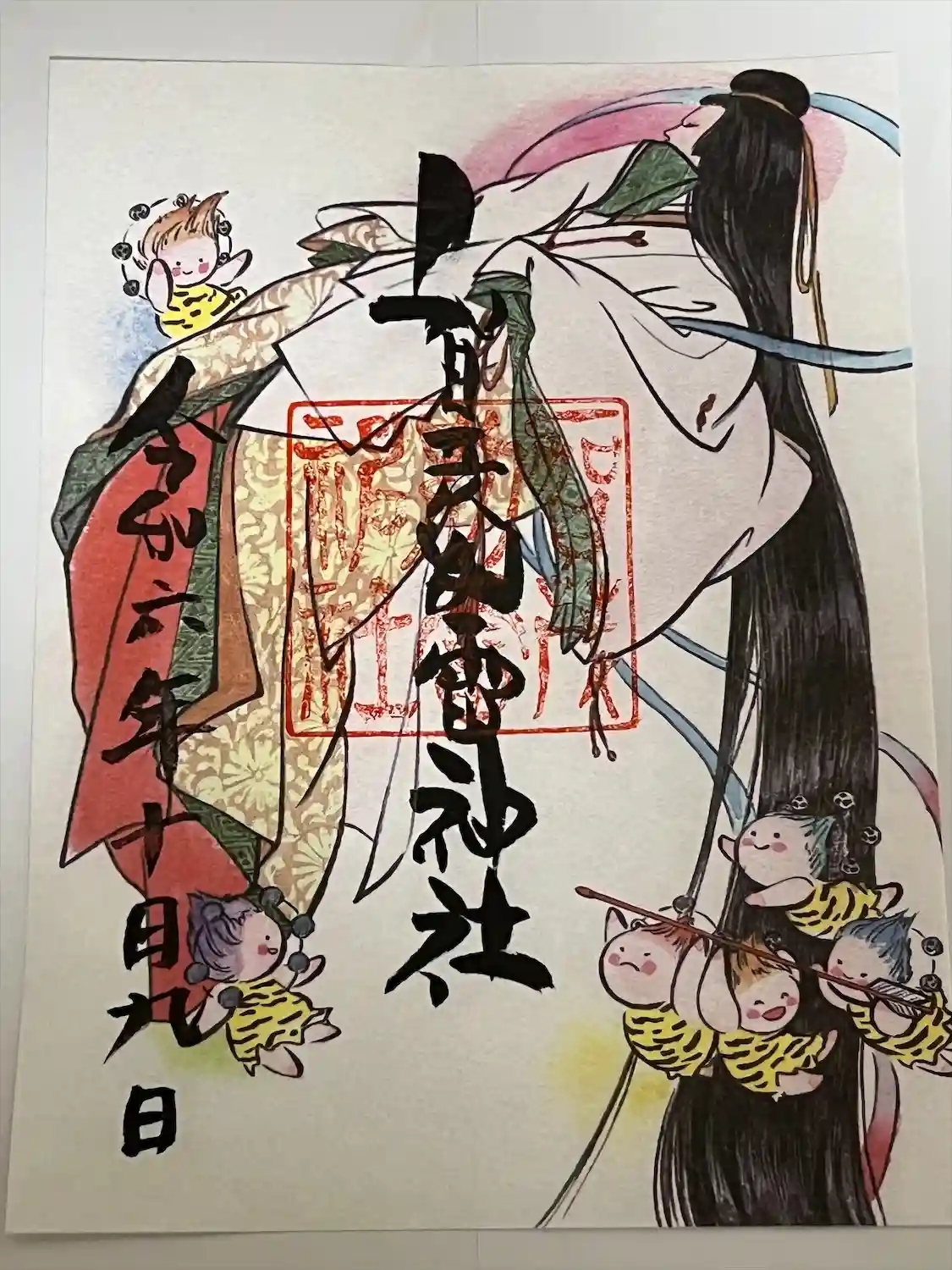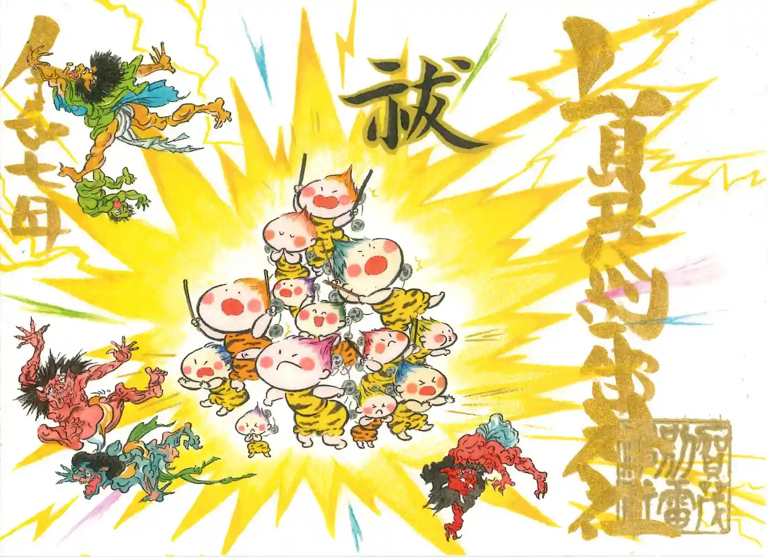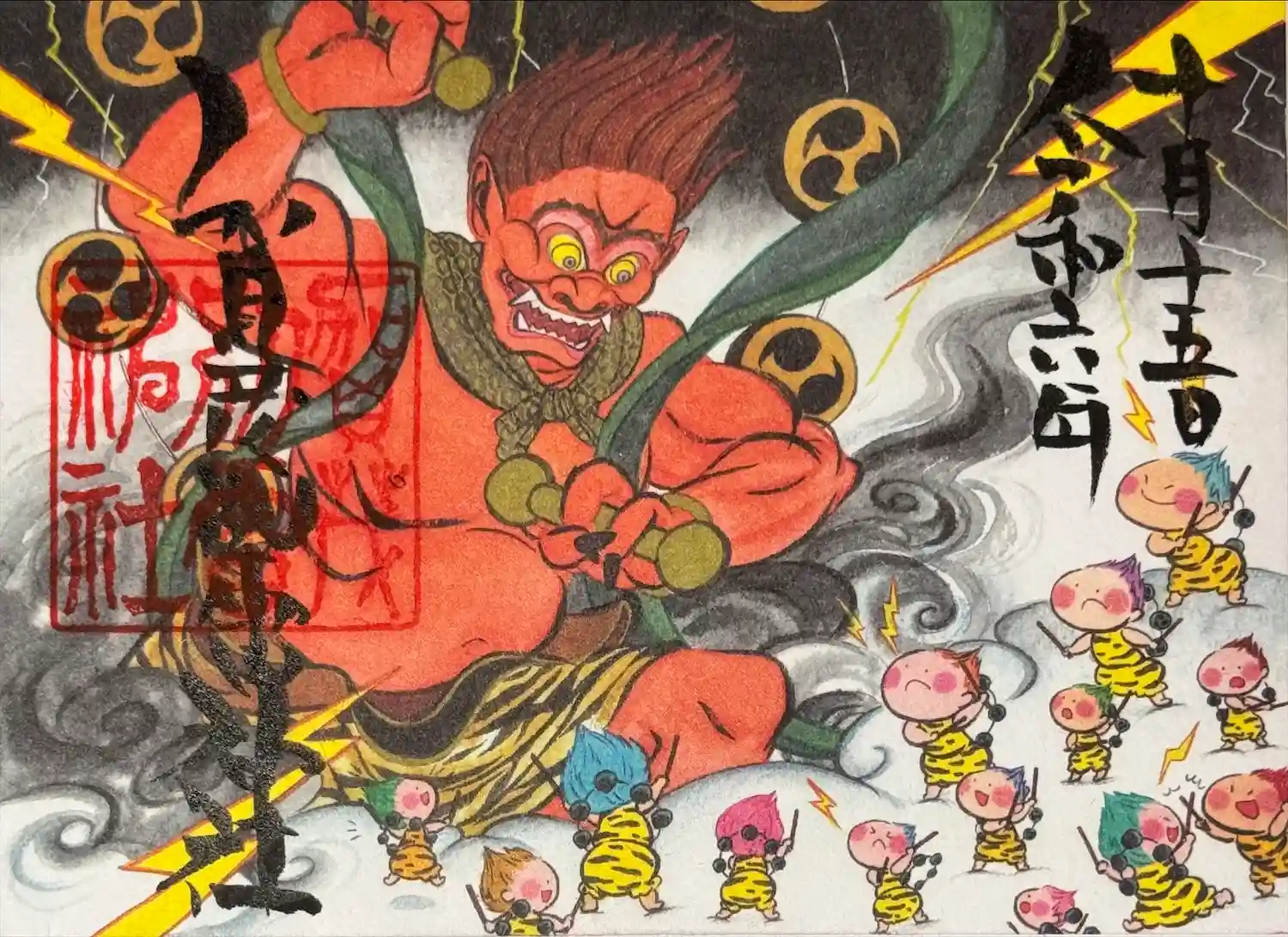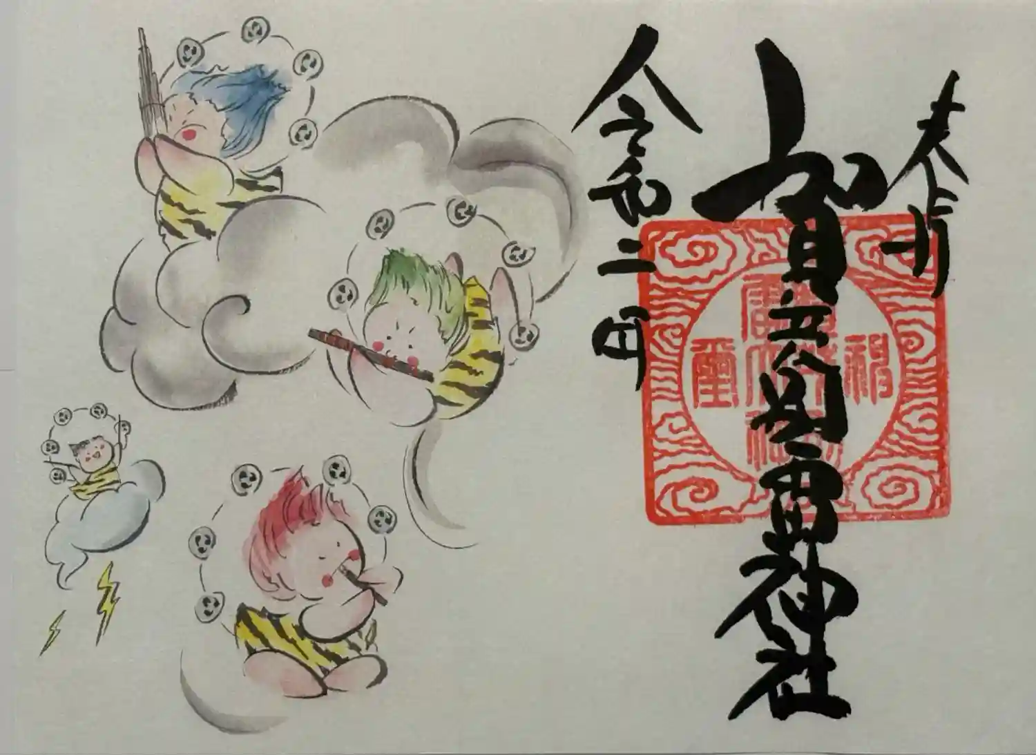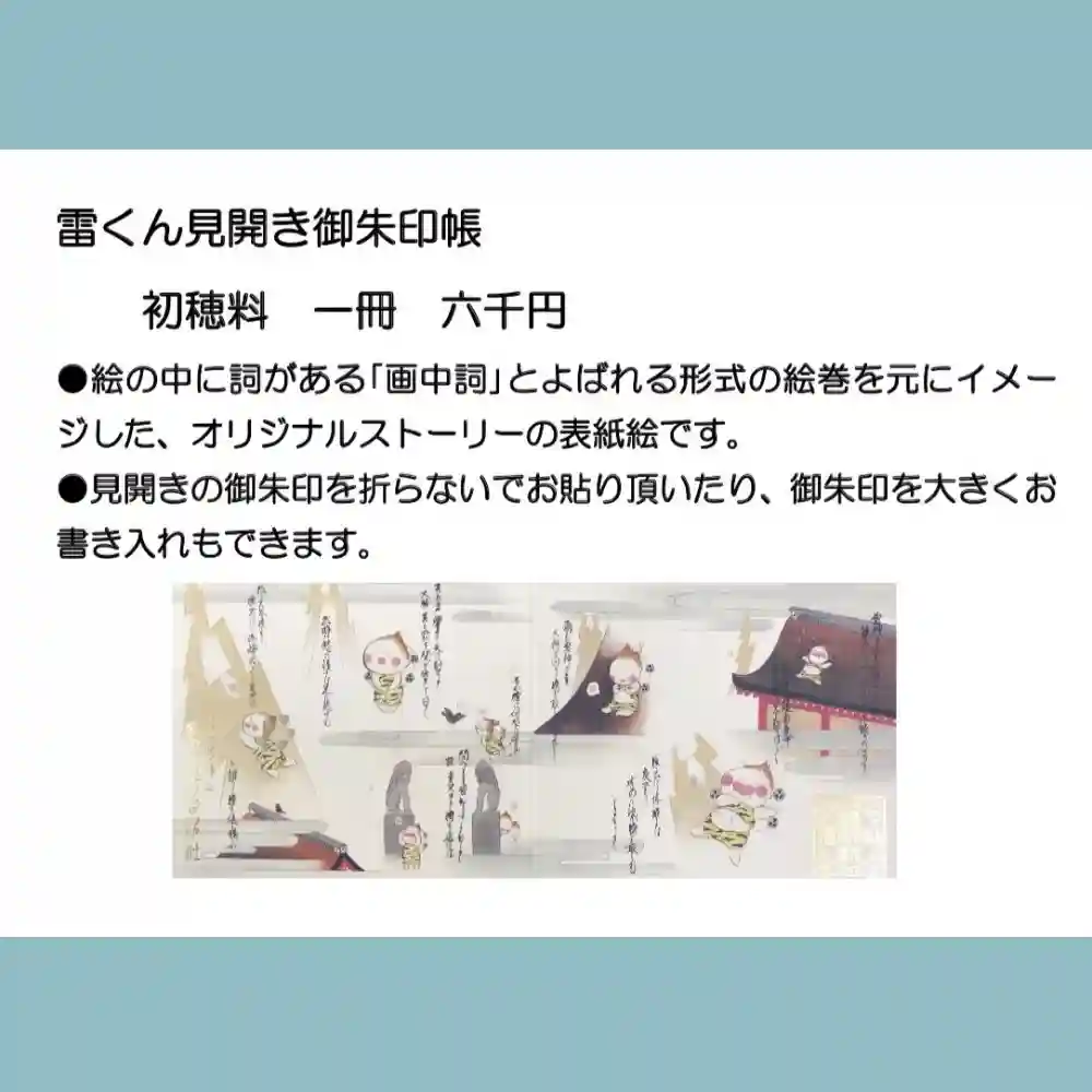 雷くんの絵入り御朱印第一号の原画。日本画家がシリーズを手掛けられています