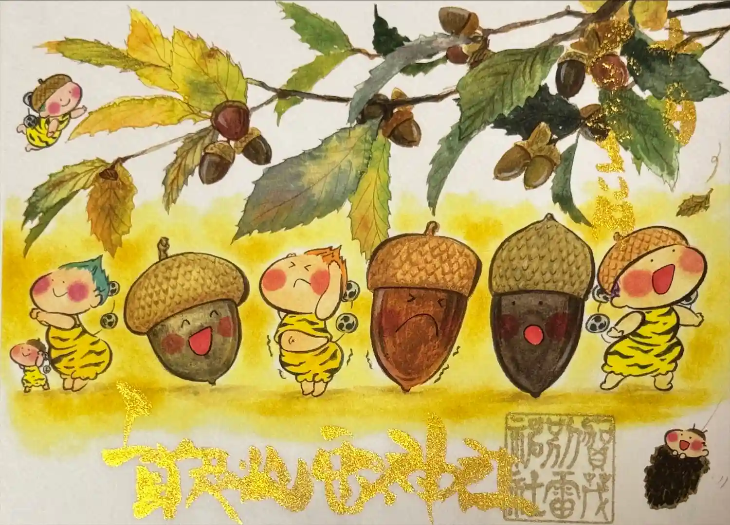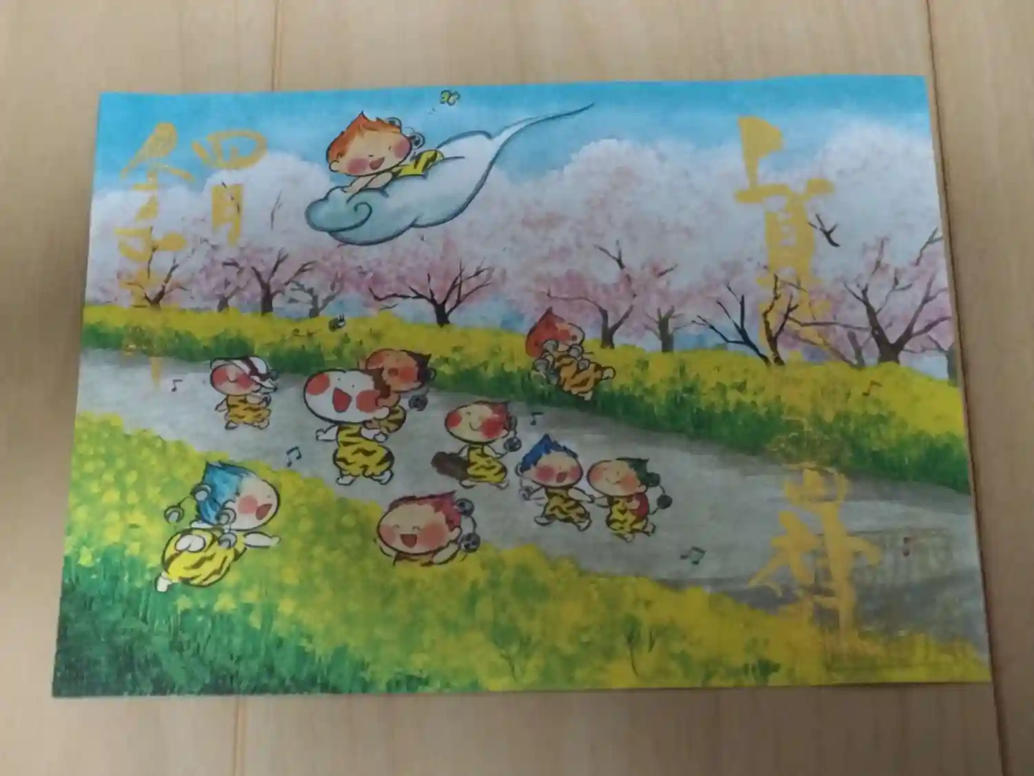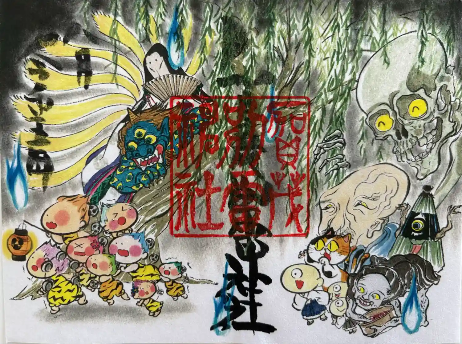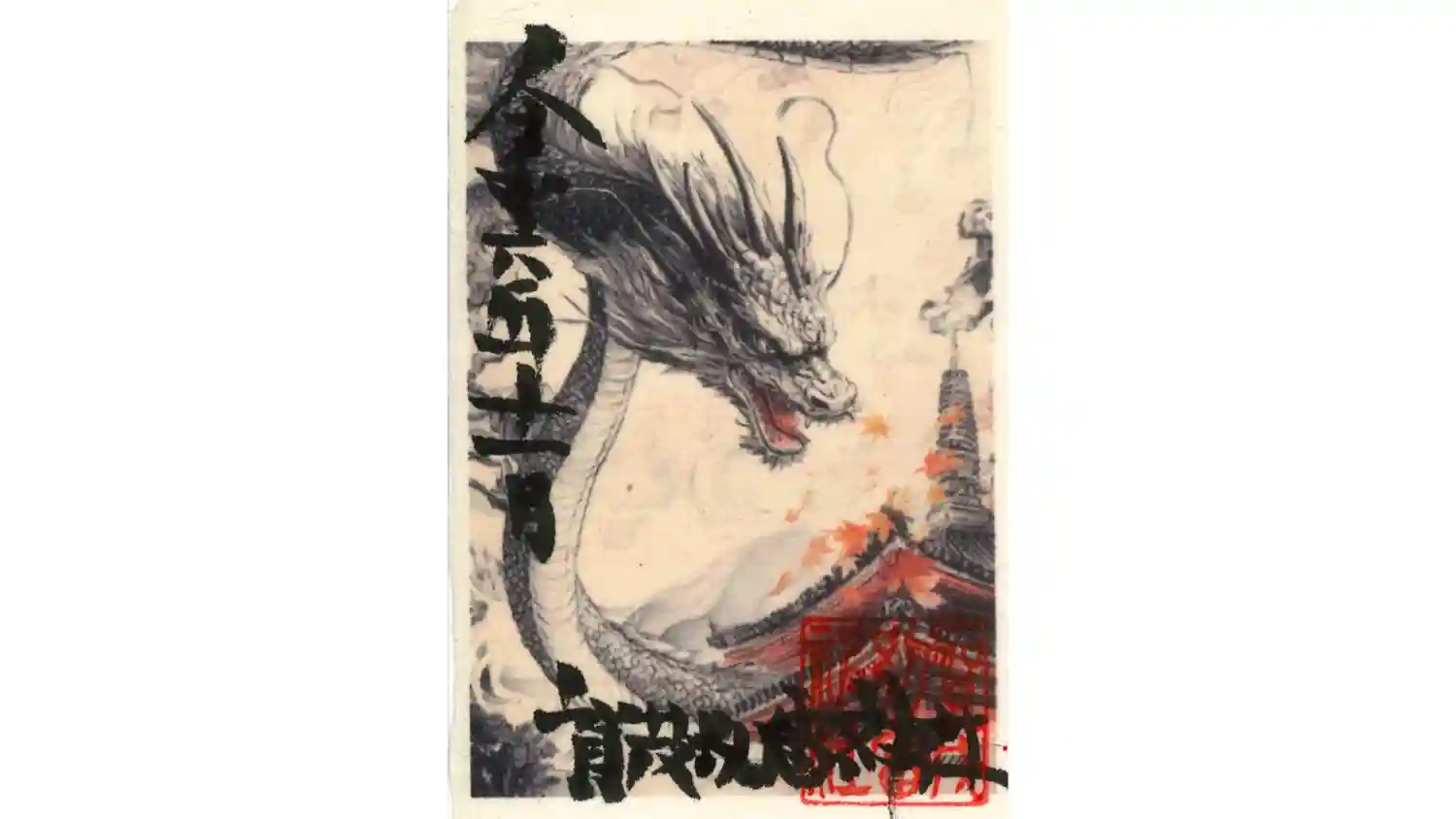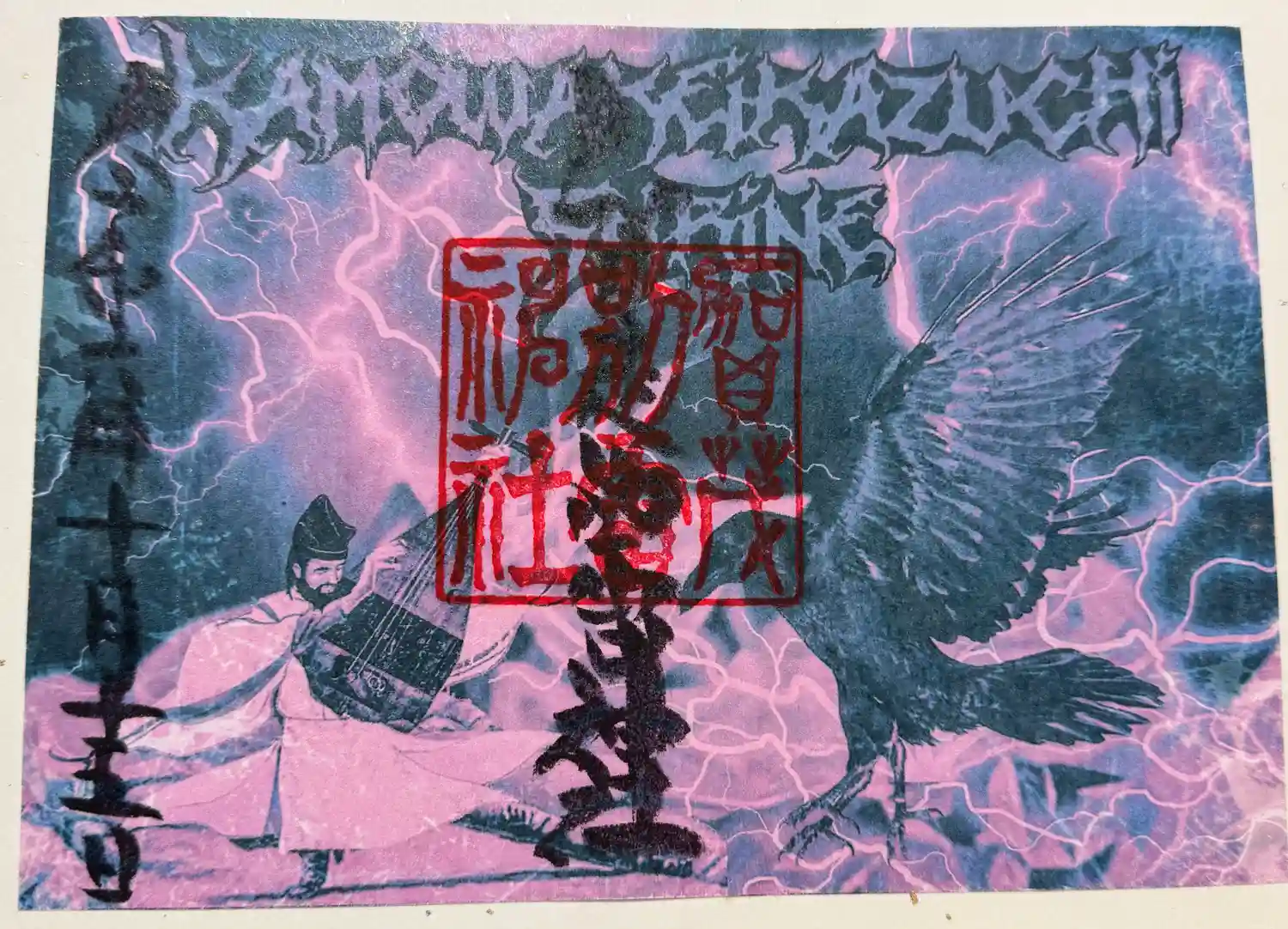 雷くんの絵入り御朱印第一号の原画。日本画家がシリーズを手掛けられています
