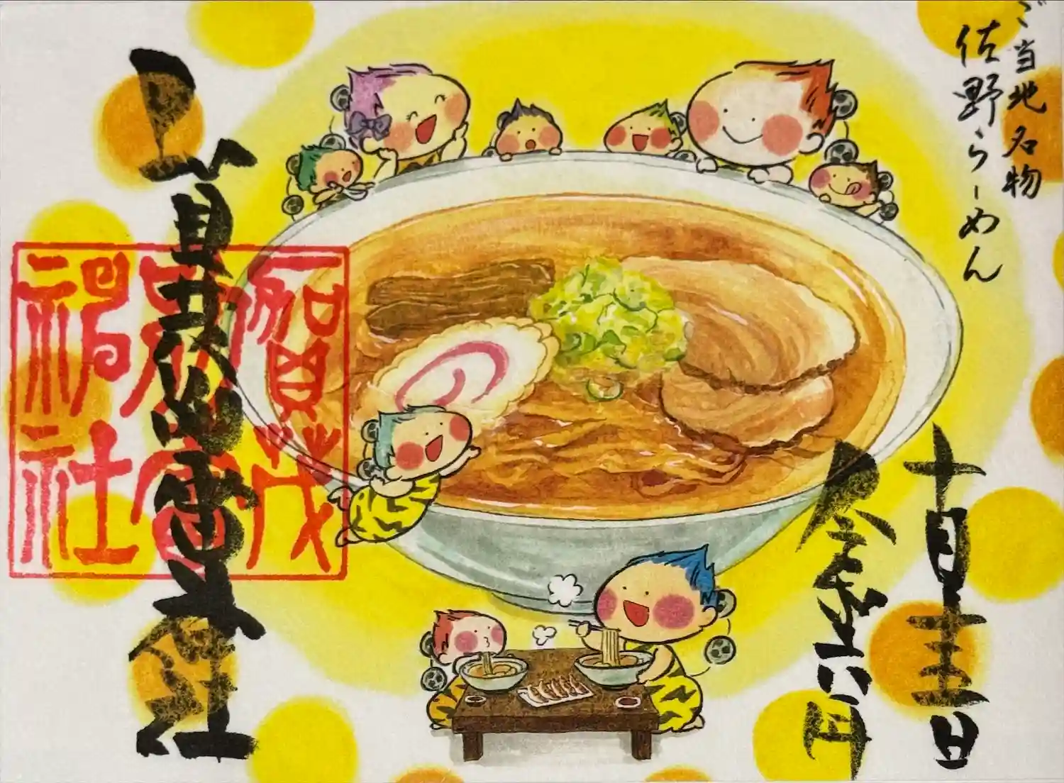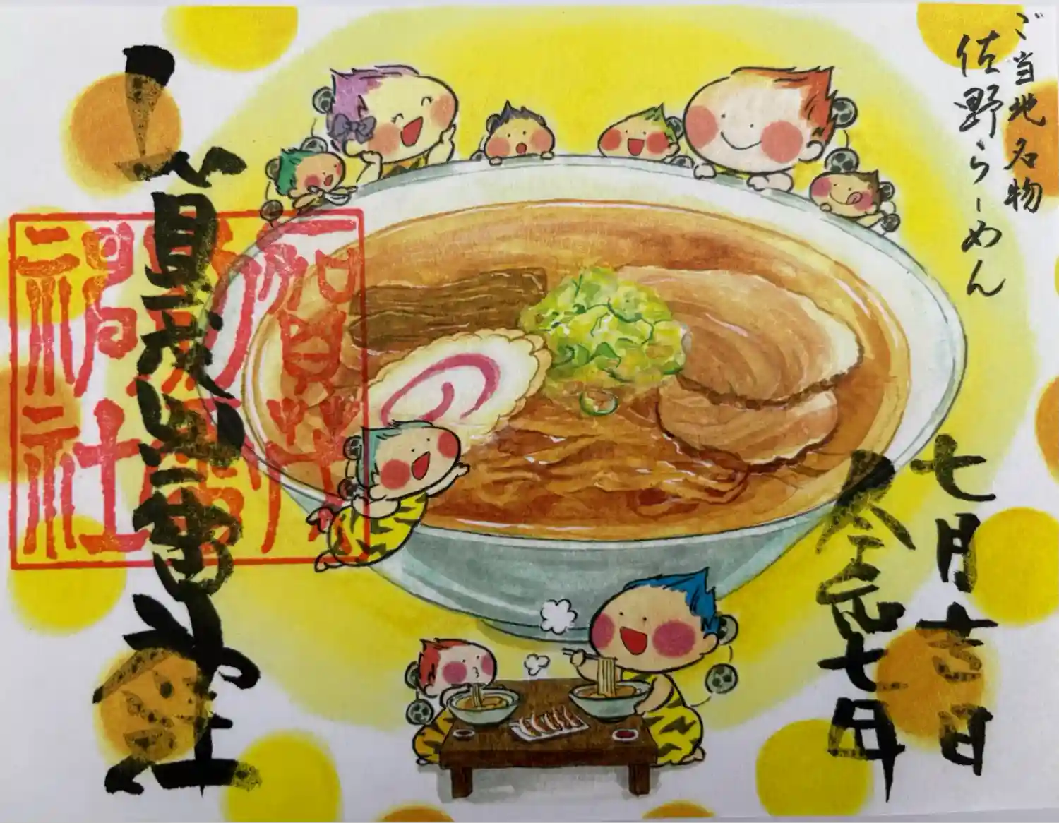当社の御朱印画「雷くん」作者先生より、佐野らーめん「くにや」さんに奉納画が贈られました。是非美味し…