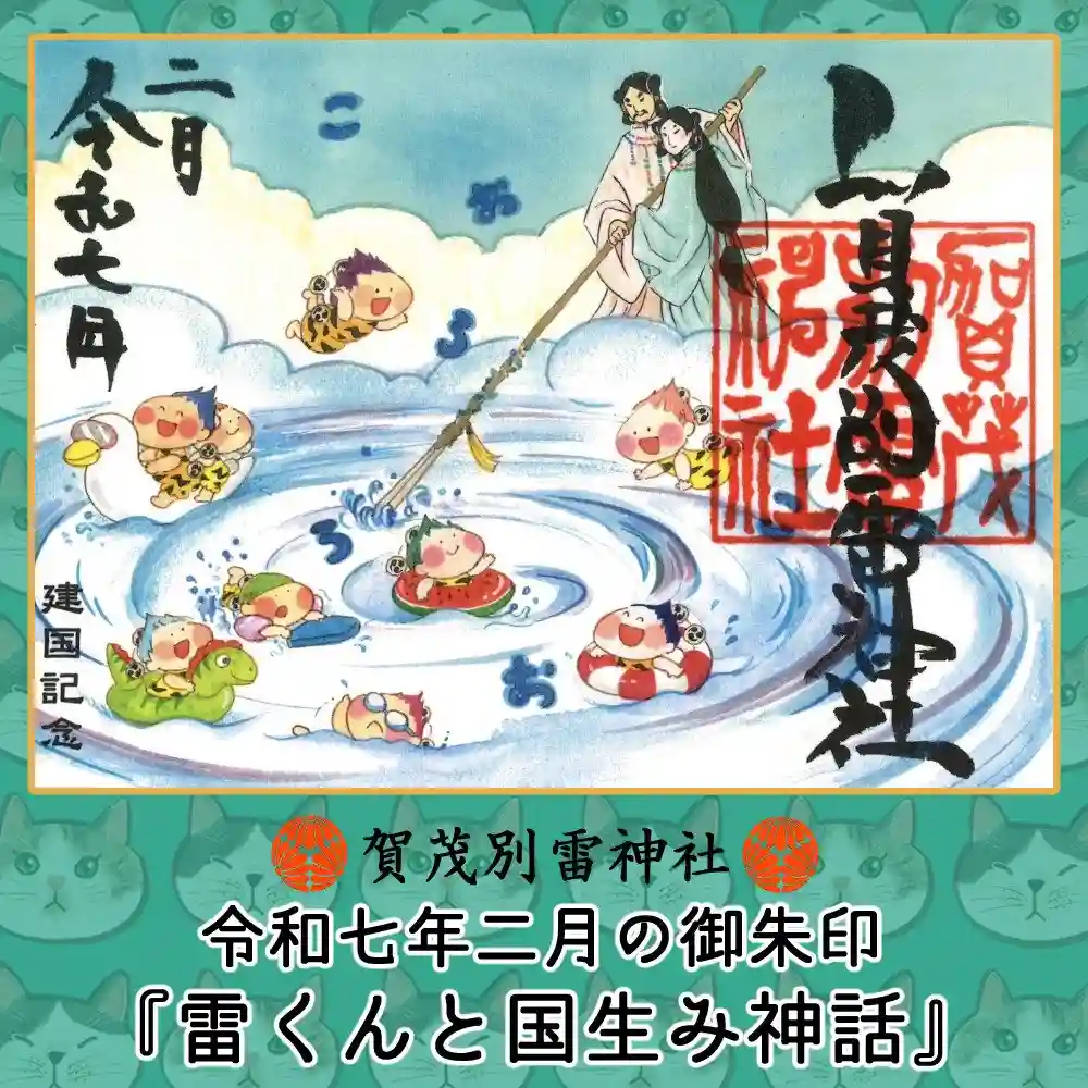2月の雷くん御朱印のご案内です。『雷くんと国生み神話』イザナギ、イザナミのニ神が天の沼矛でオノゴロ…