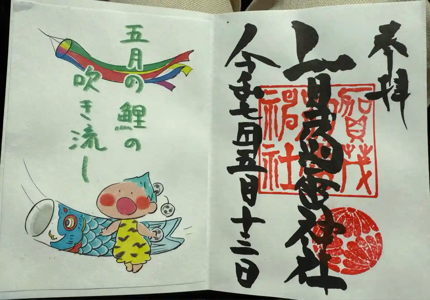 思いがけず、『みどりの日』限定の御朱印を頂きました(˶´∇`˶) 大好きな鯉のぼり🎏で嬉しい(…