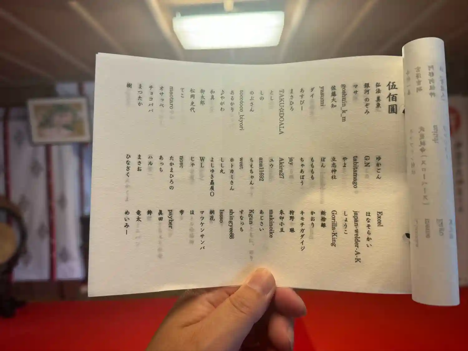 御朱印の墨が他のページに写らないよう挟む半紙