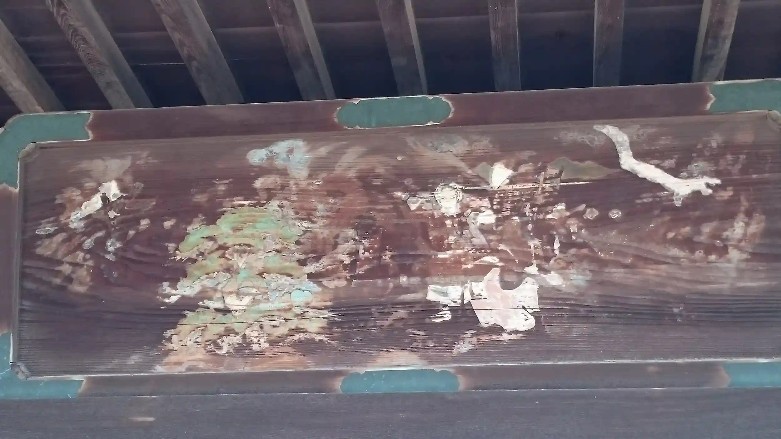 社殿の屋根下に目を引く絵が掲げられてました