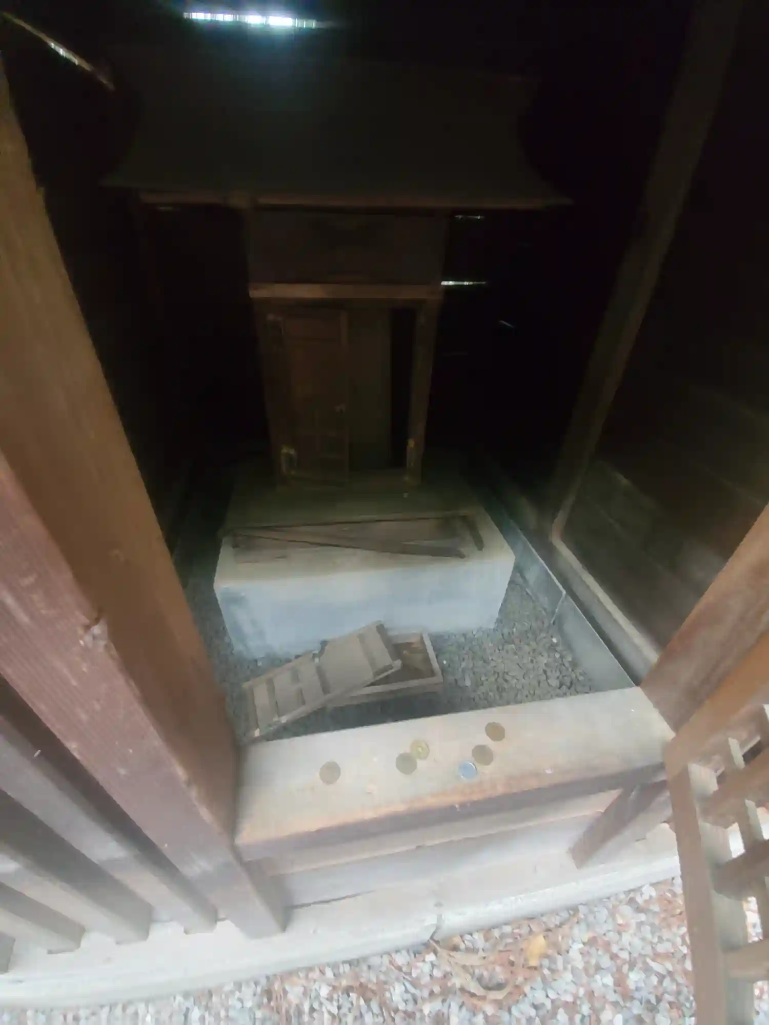 荒れてますね・・・賽銭が何枚かあるので、ごく稀に訪れる人がいる模様