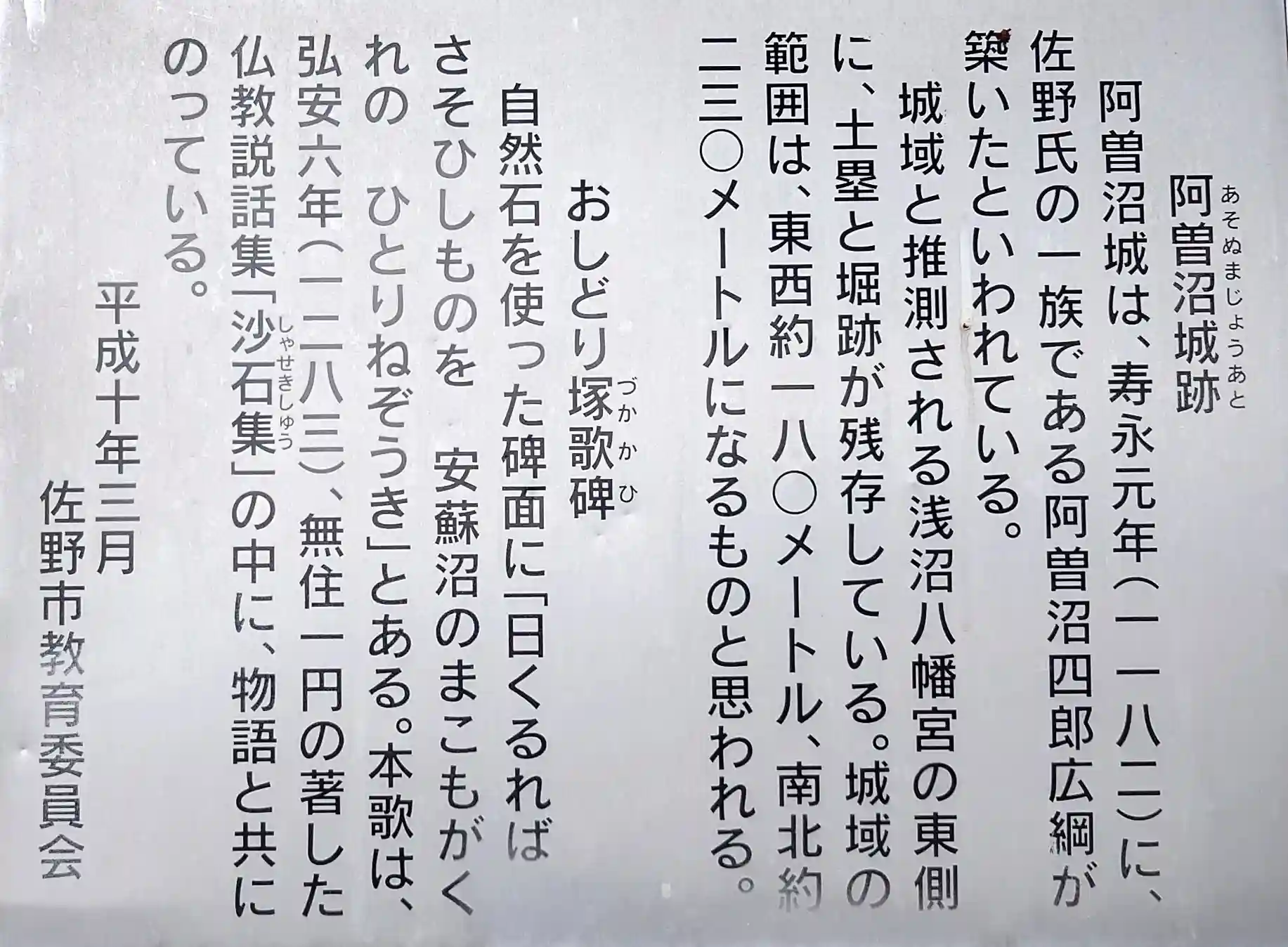 浅沼八幡宮は、社務所は無人で宮司さんは常駐されてないようですが神社境内は、とても綺麗にされています。 宮司さん、氏子さん、近所の方々でいつも掃除などされてるのだろうと思います。 またここには、阿曽沼城(あそぬまじょう)があったようで案内板に記載されていました。