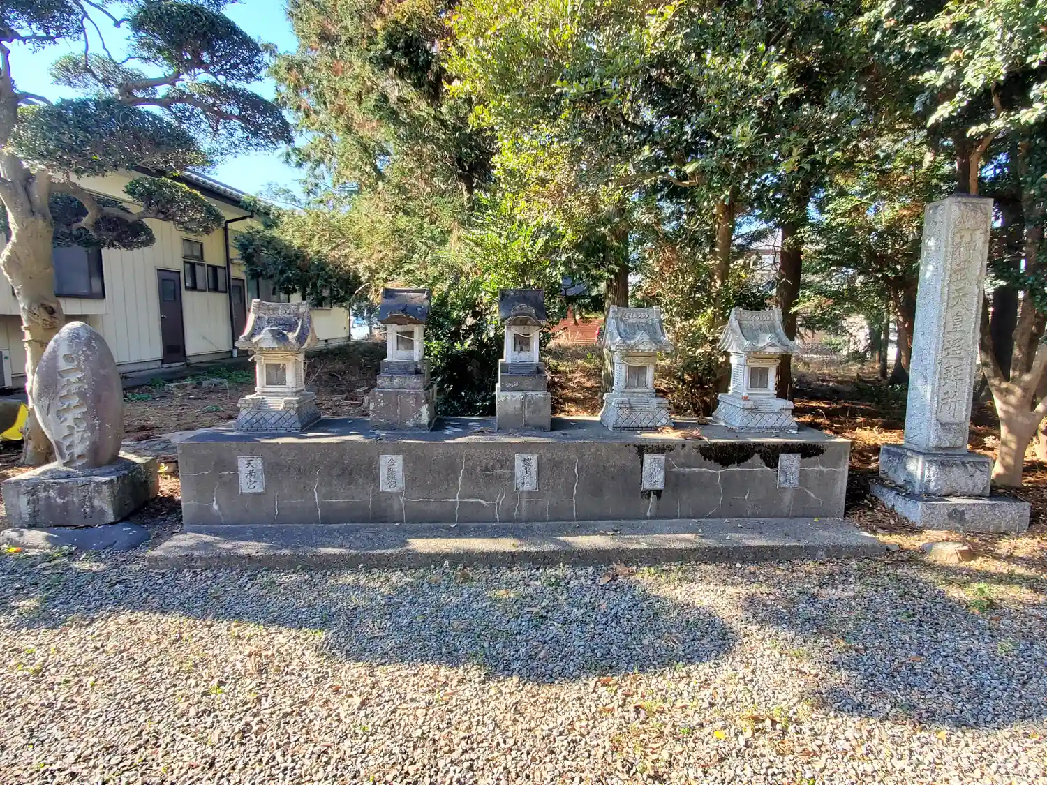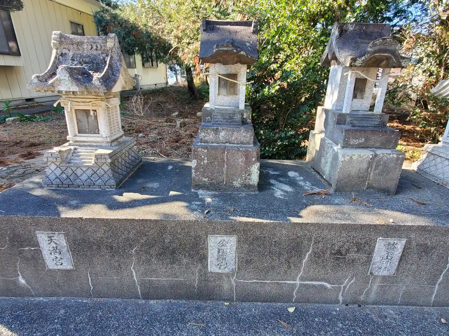 | ご祭神 | 《主》天照皇大神 《配》豊受大神・此花咲耶姫神・大物主神・菅原道真公・火産霊神 《境内社》神武天皇遥拝所 |