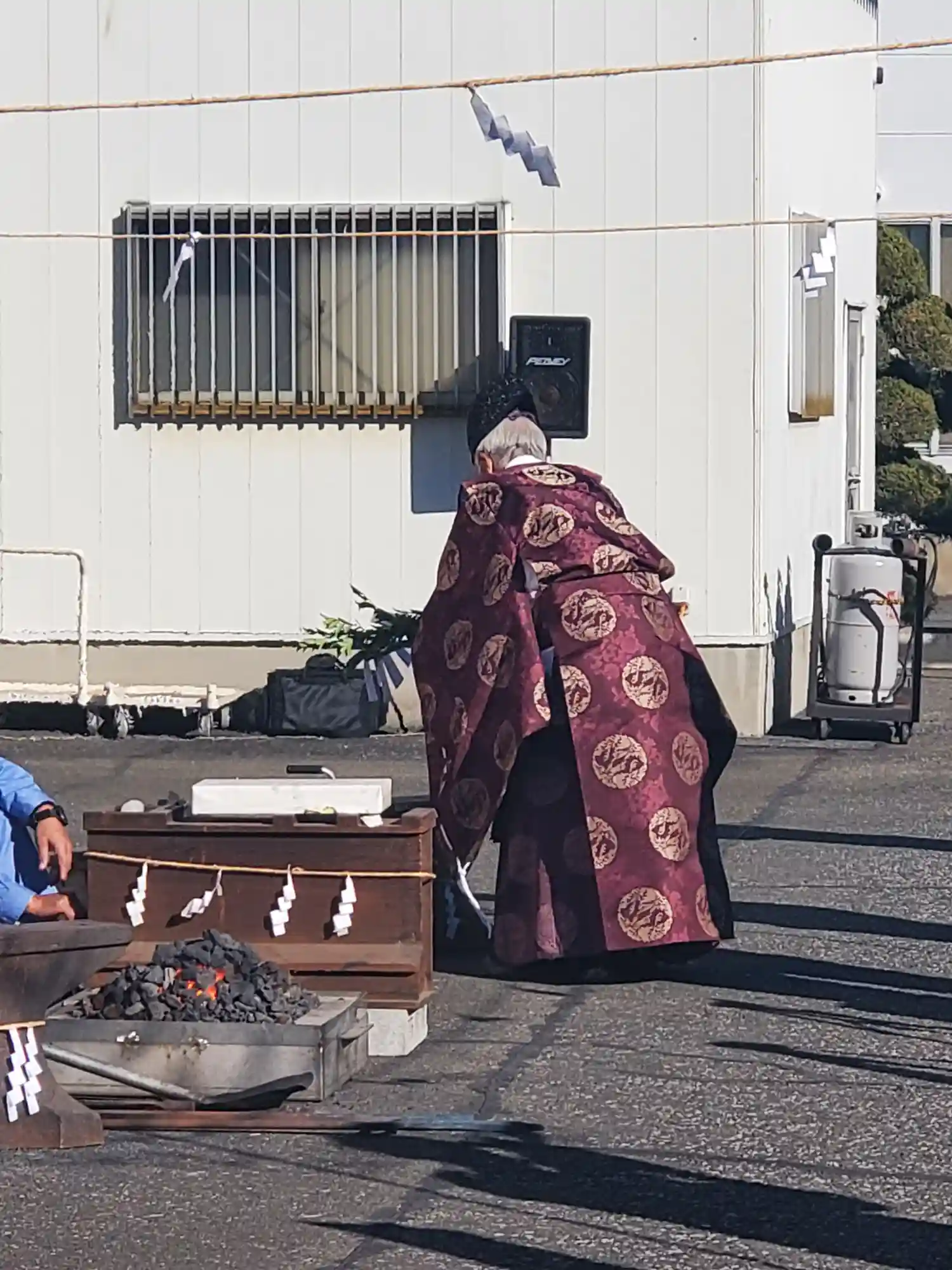 次に神主一人が出てきて、本日使う道具や神聖な火のお祓い🔥🌿