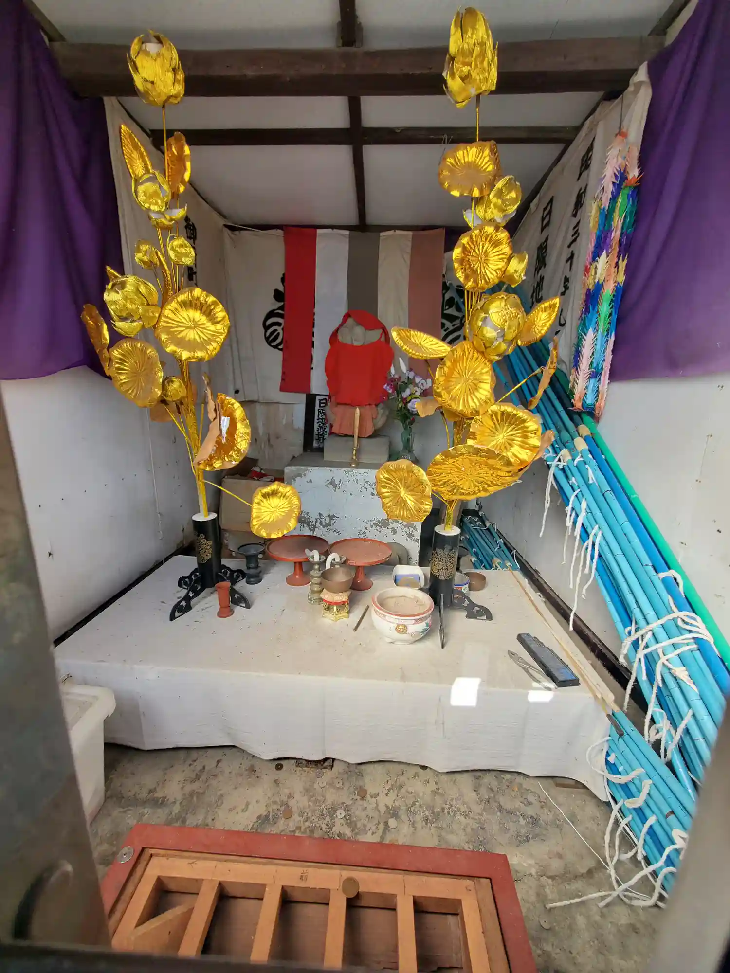 近くにある友之郷開運稲荷神社の井戸から掘り出されたという日限地蔵尊。