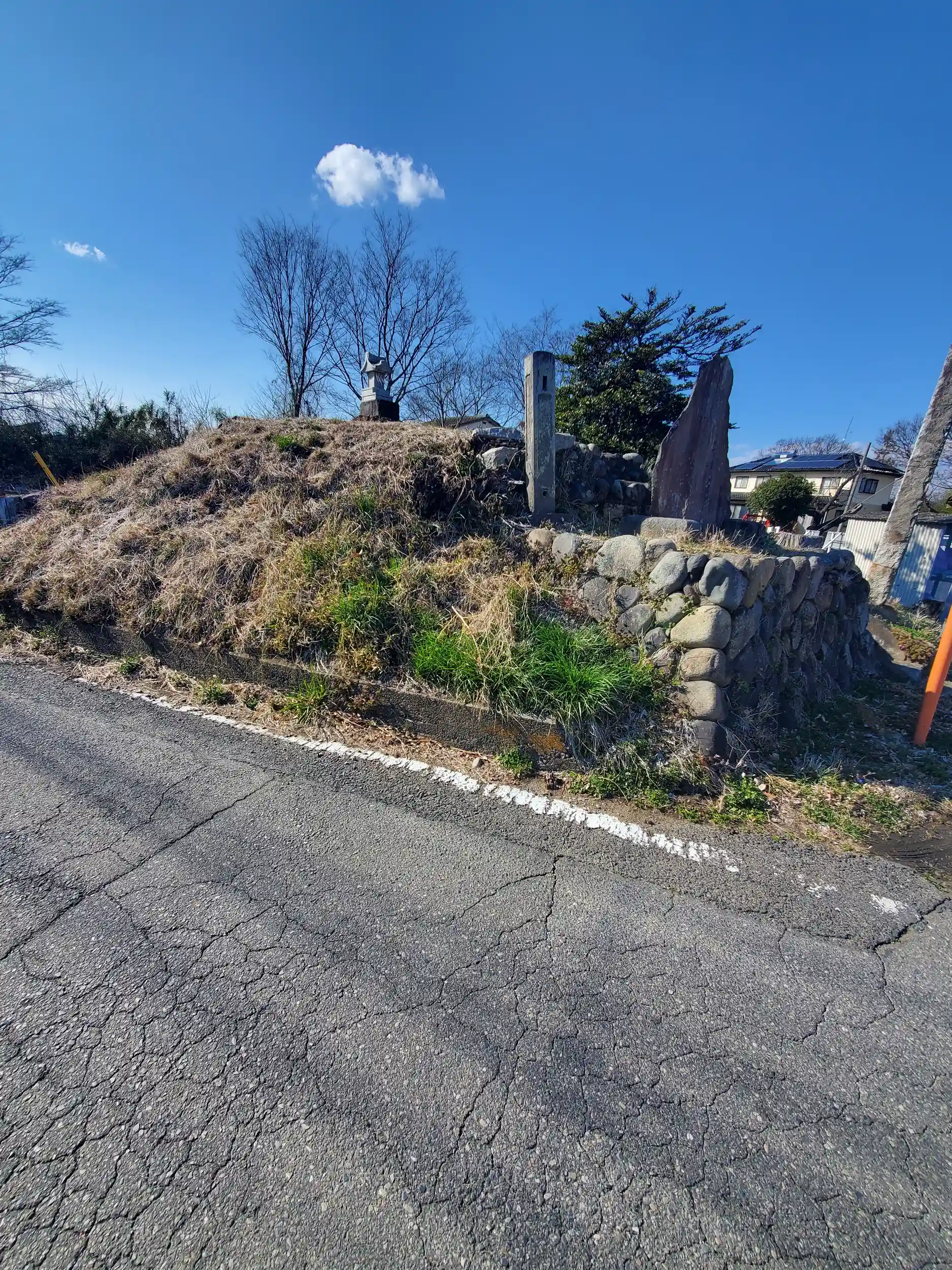 自治会館前の道を西に300m弱行くと、以前偶然見つけた、島田町の浅間神社の富士塚がありますが・・・まさかこれが雨降山ってことはないよな💫