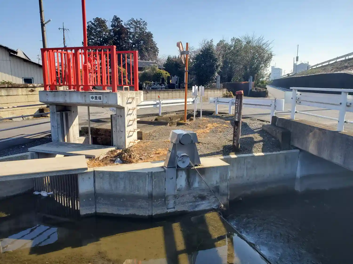 前にあるのは三栗谷用水 中里堰という水門