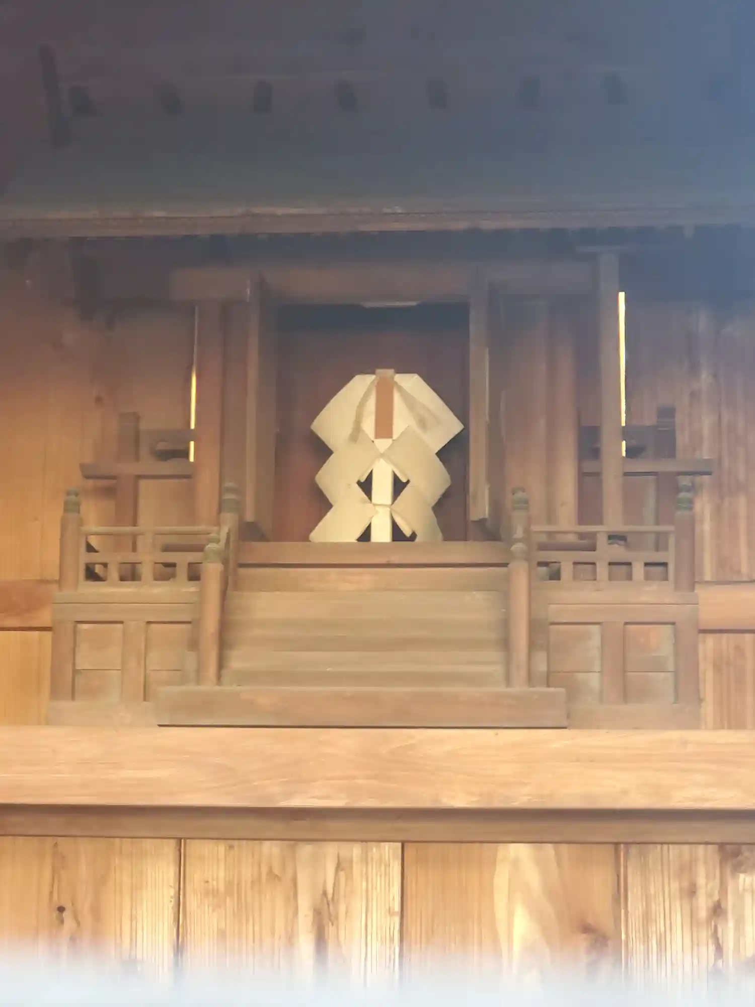 目線より上になる位置に神棚が設置されてて、幣束が祀られてました