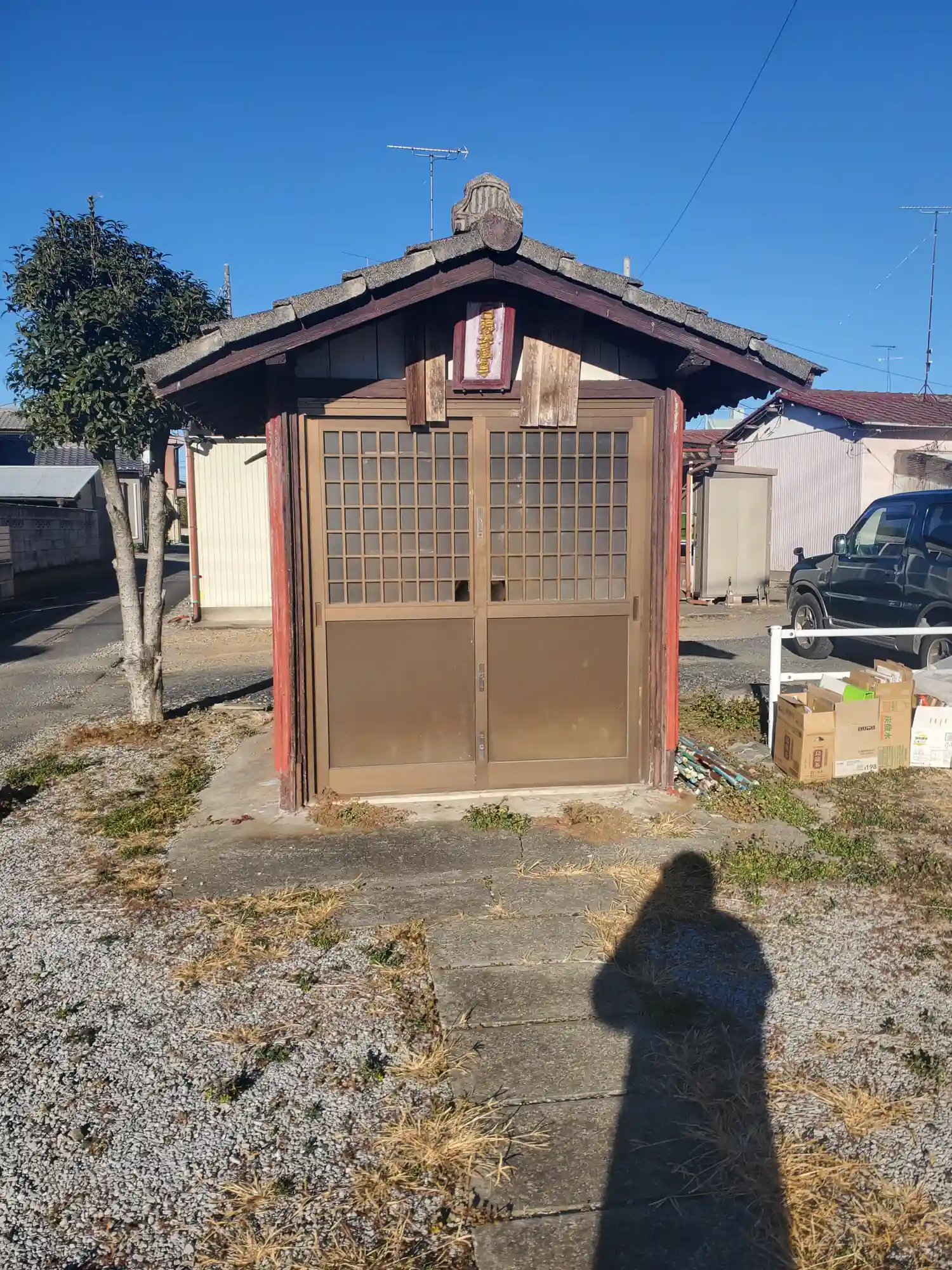 東に民家を一軒挟んで、神社の井戸から掘り出されたという日限地蔵尊のお堂があります
