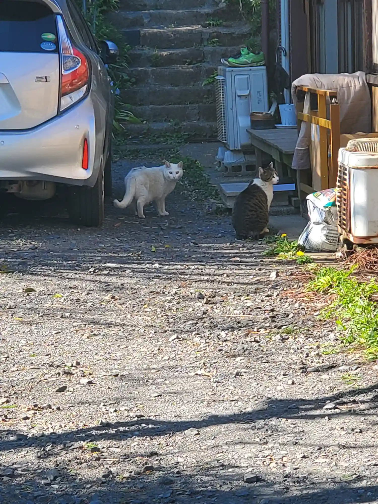 近付くと猫が3匹、蜘蛛の子を散らすように逃げていった!? Σ(Д゚;/)/ヒイ!