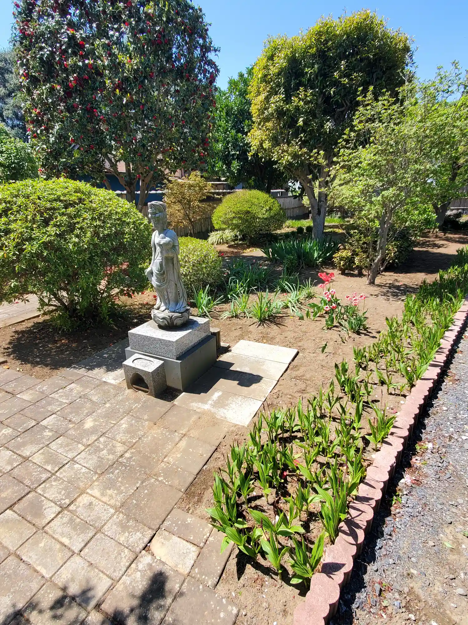 端の方はチューリップなどが植えられた庭園