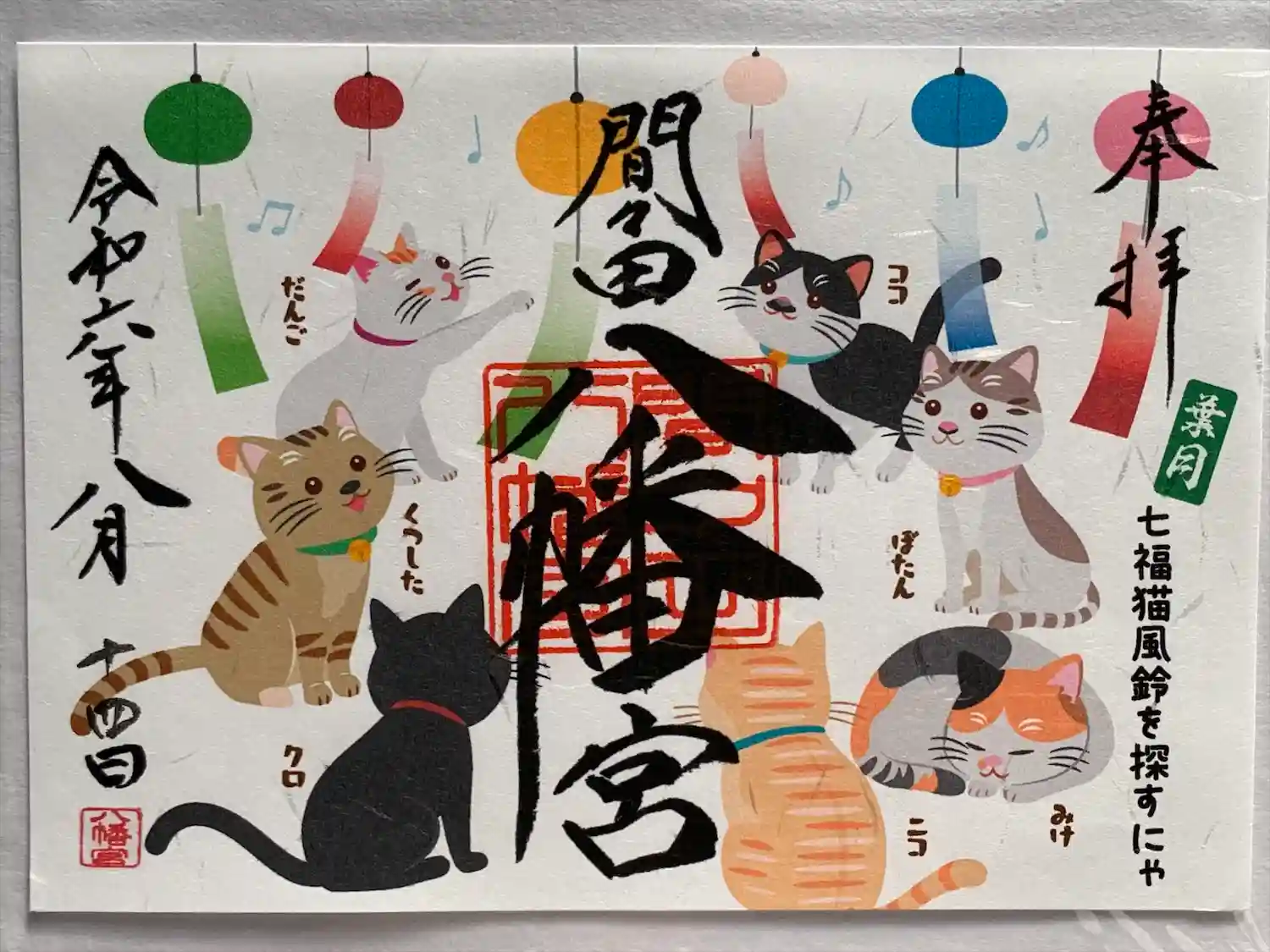 間々田八幡宮では、季節に合わせてカラフルな限定御朱印をいただけます。