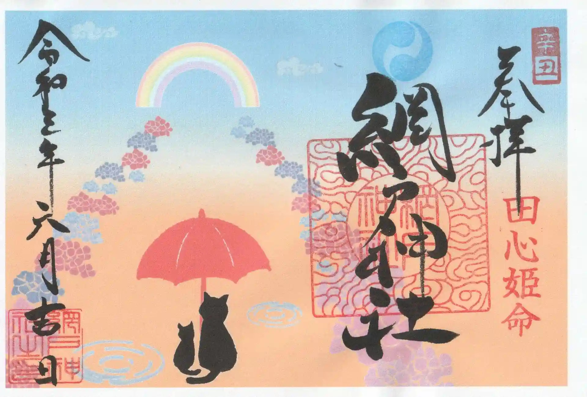 網戸神社より、御朱印を郵送授与いたしました。