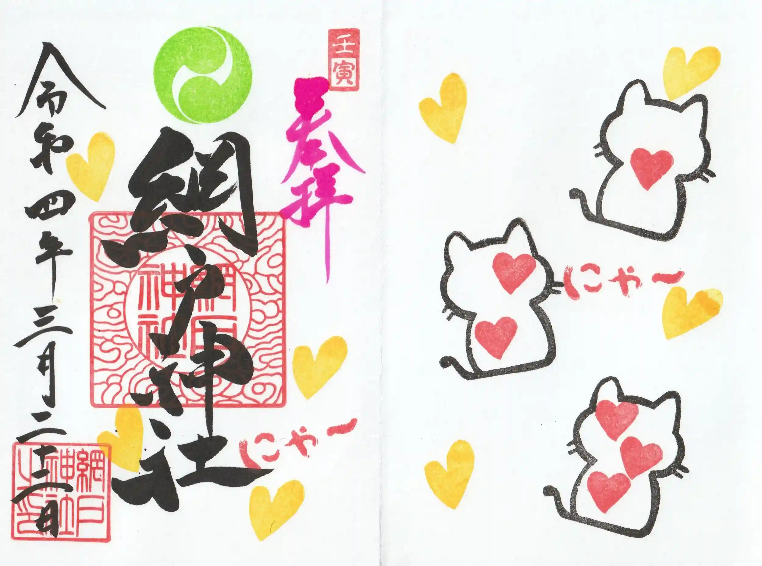 通常であれば、社務所が閉まっている日ですが、今日は猫(22日)の日ということで、インスタにて、社務所を開けられているとのことでしたので、伺いました。