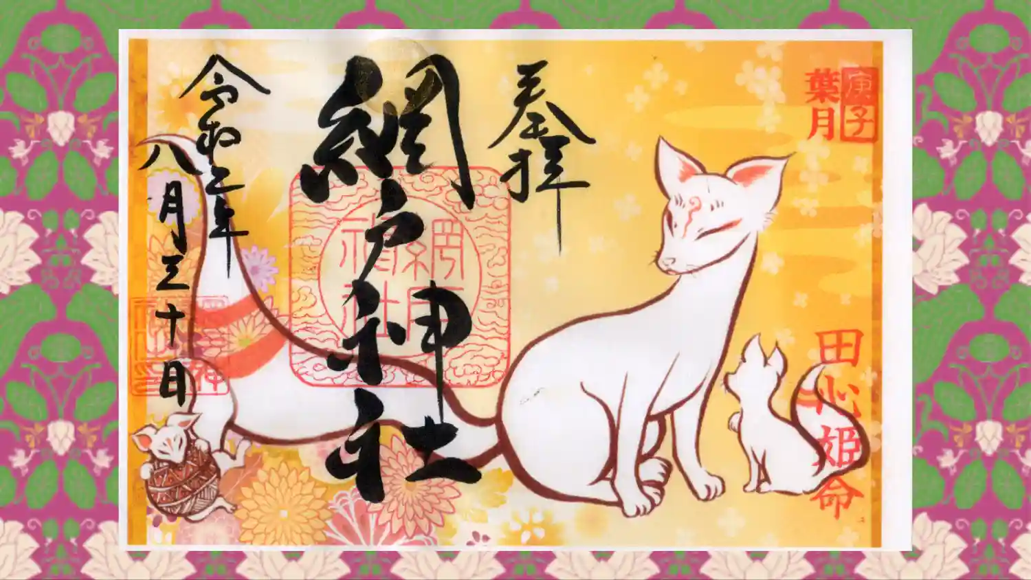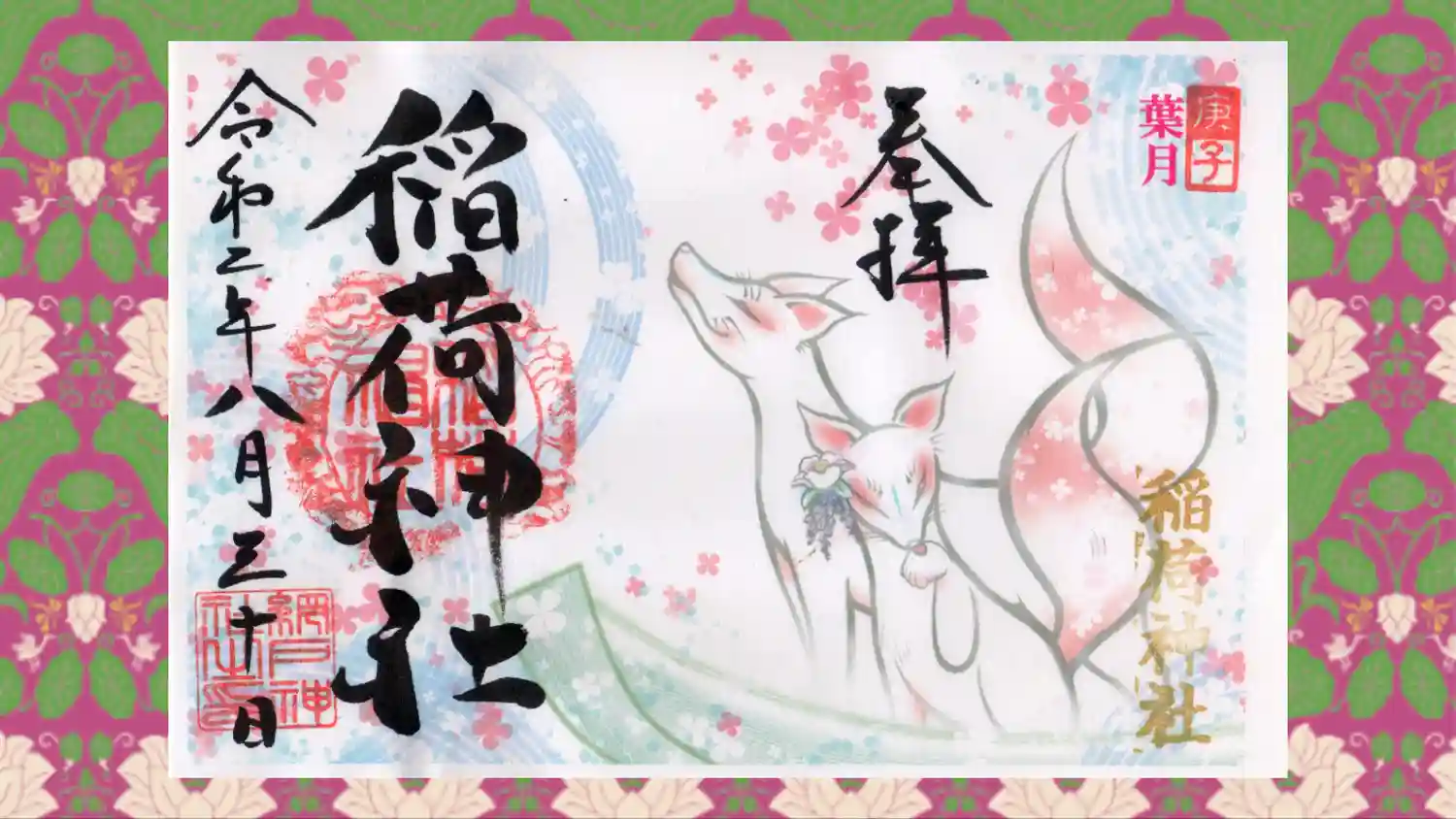 コロナ禍でしたので郵送で頂きました。 紫陽花の時期でしたので紫陽花と狐の二種類頂きました。