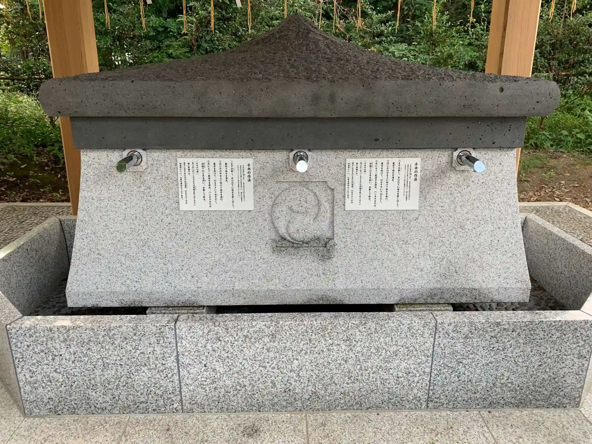 柄杓を使わない近代的な手水舎が狛犬がいる方にある。