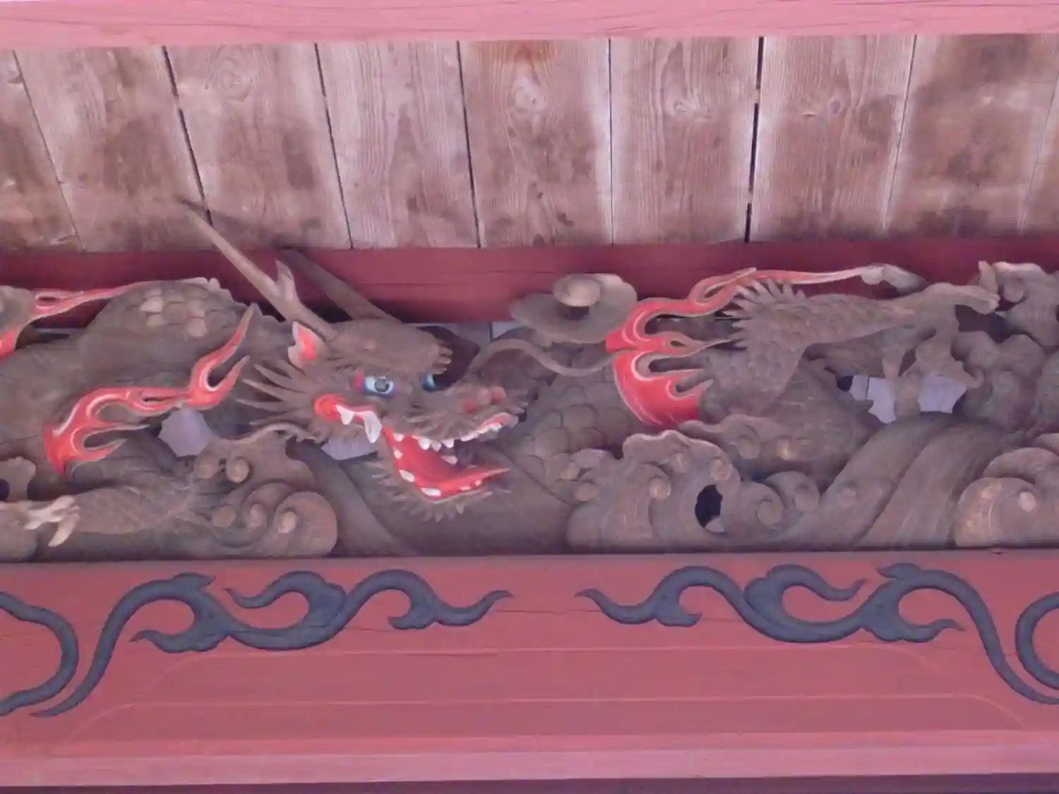 隋神門をくぐる。上の細かい彫刻も、守護神像の矢大臣・左大臣も発色がビビッド。塗り直して間がないのかな。