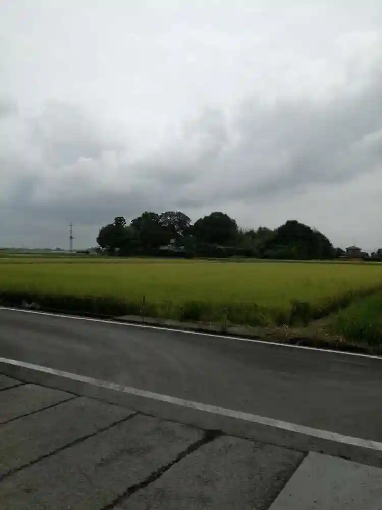 神社から東北東約200m、畑越しに見える民家が宮司さん宅、でいただきました。