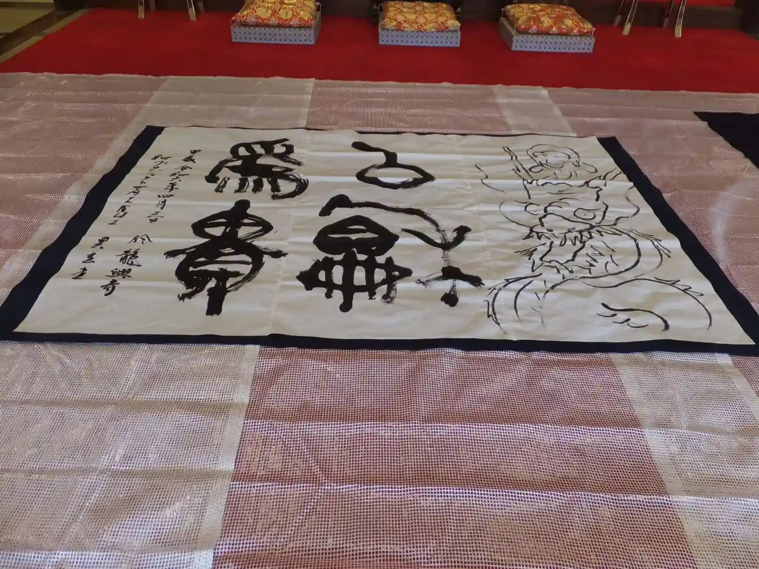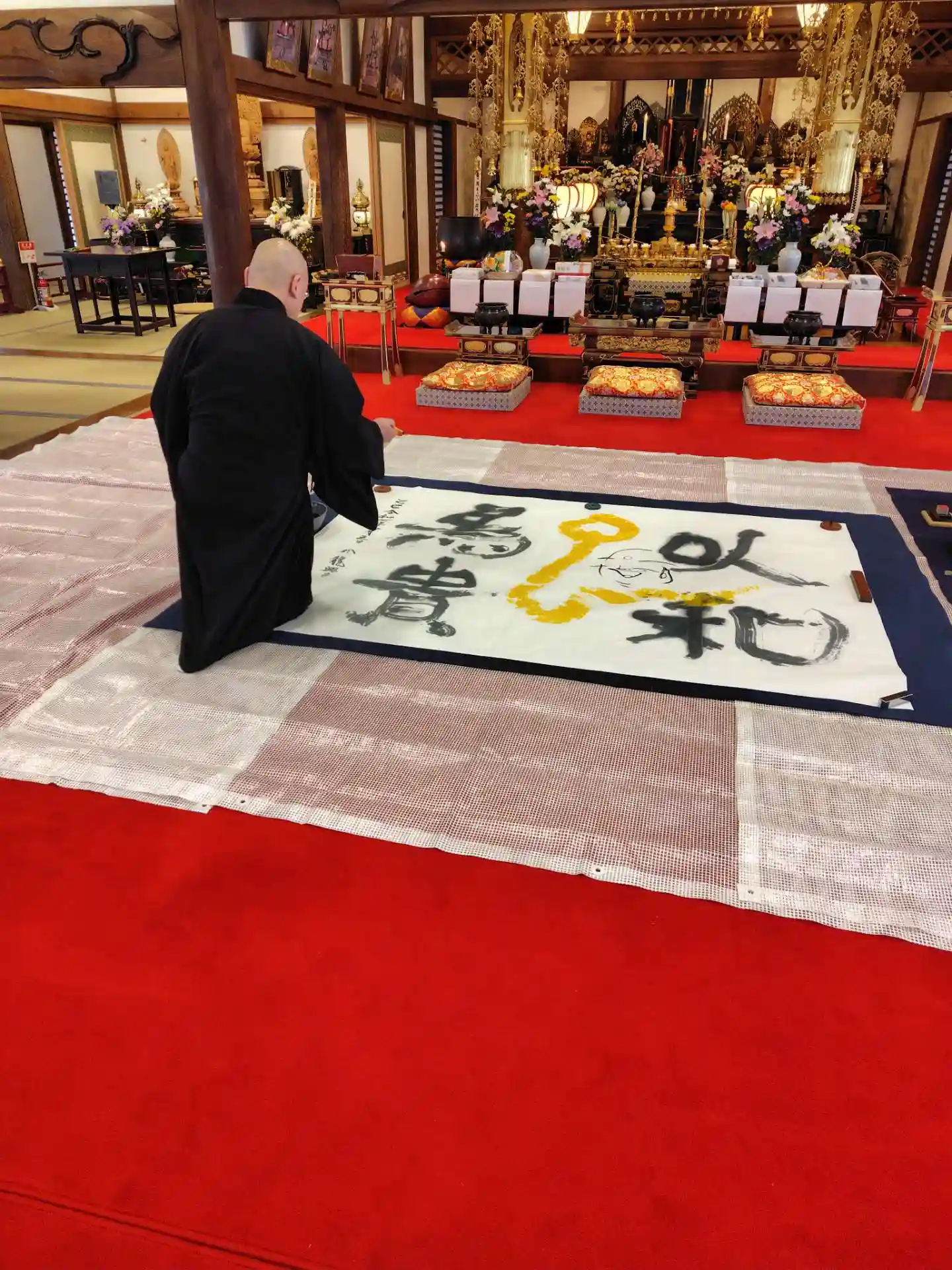 僧侶阿波昊玄氏による揮毫。 聖徳太子のお言葉 『和を以て貴しとなす』が書き始まり