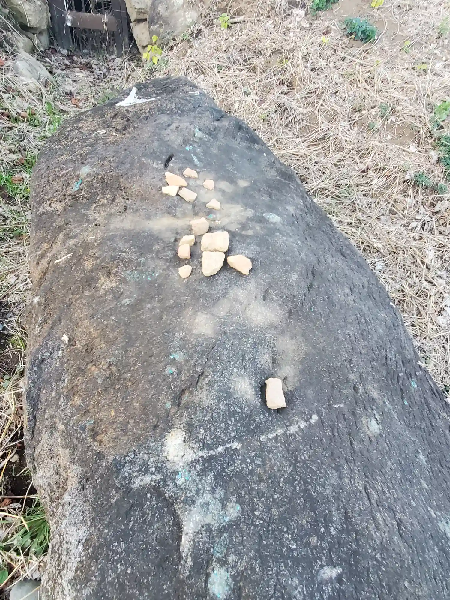 岩の上には埴輪片と思われるものが積まれてました