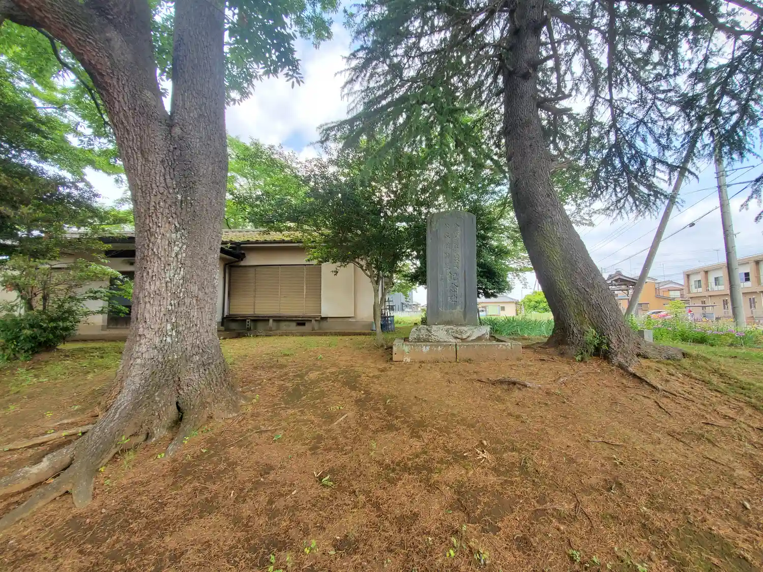 藤岡神社の社殿と一の鳥居の間にある。