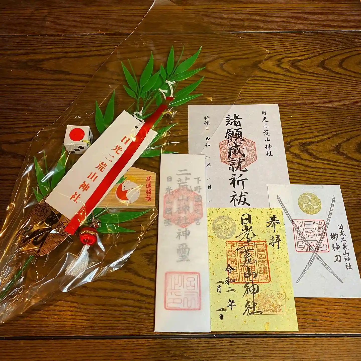 日光二社一寺初詣、崇拝神社の日光二荒山神社で元旦の朝1番祈祷の申し込みをしてお札と福笹と御朱印をいただいてきました。