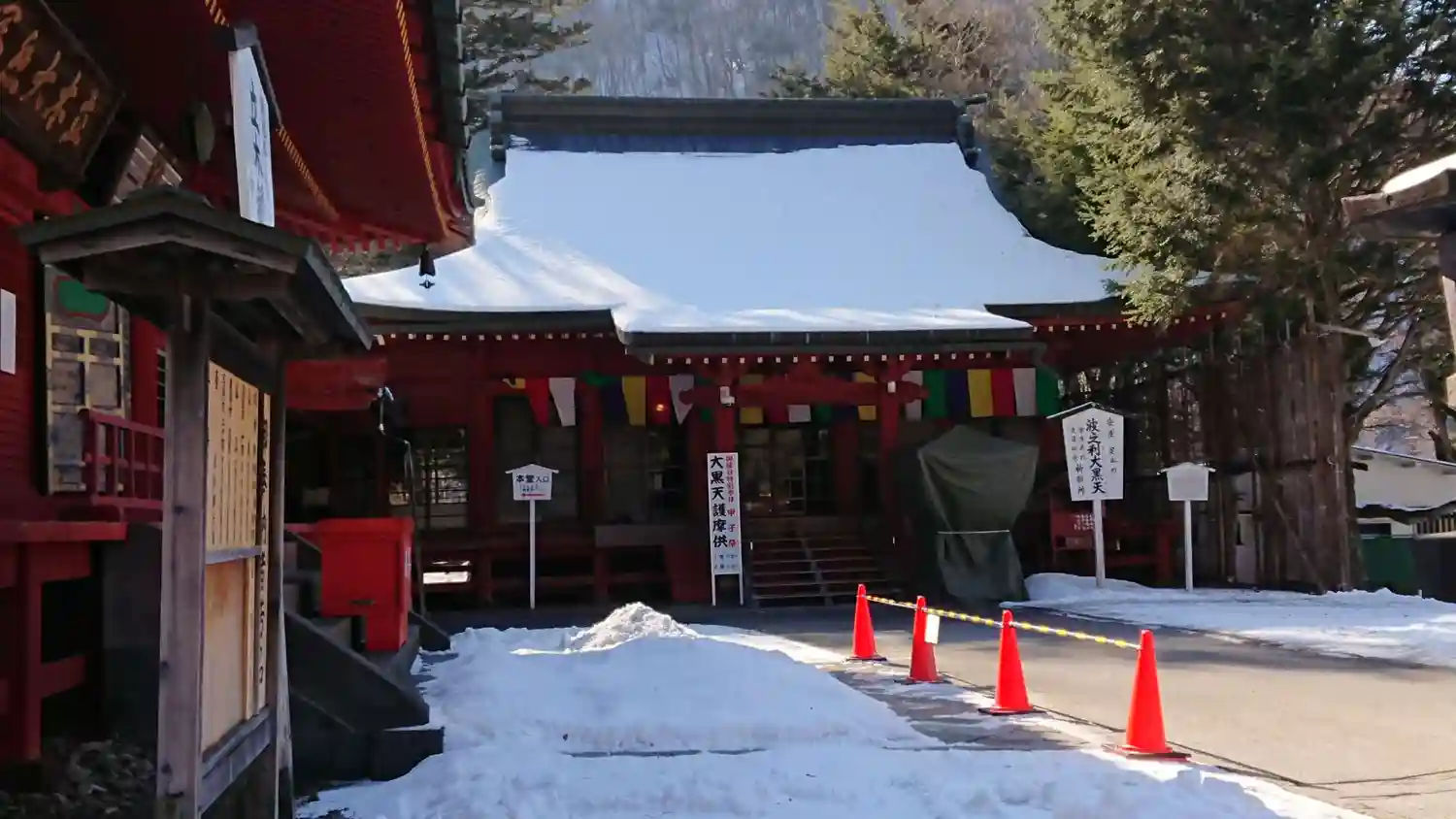 参道の突き当りにある<波之利(はしり)大黒天>。安産、足止めに御利益があるそうで、看板には<事業成就、交通安全祈願所>とある。