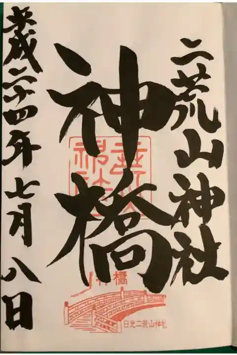 10年前の御朱印棚卸しです。二荒山神社で御朱印帳をいただき、神橋にて御朱印をいただきました。