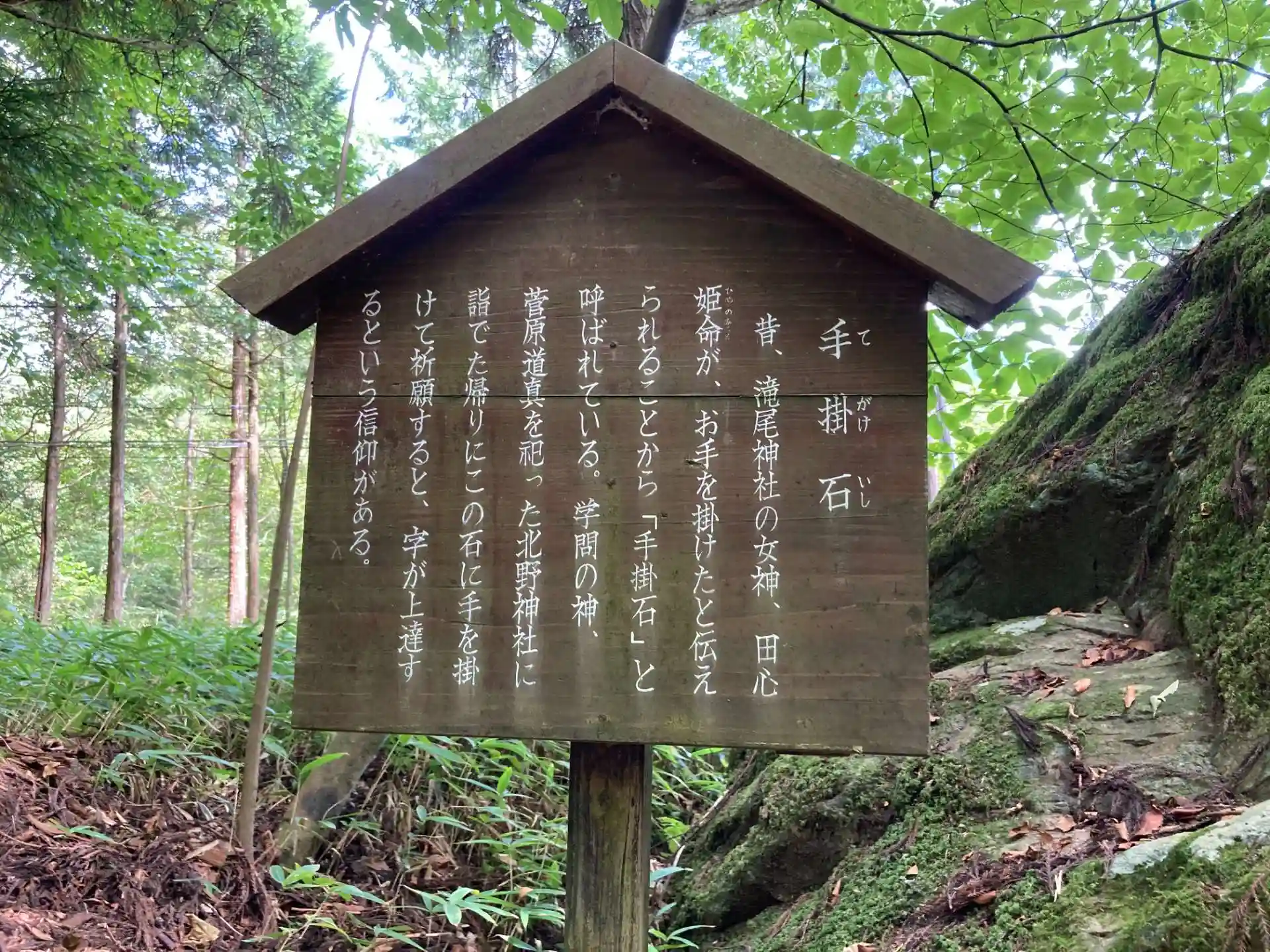 「北野神社に詣でた帰りにこの石に手をかけて祈願すると字が上達するという信仰がある」