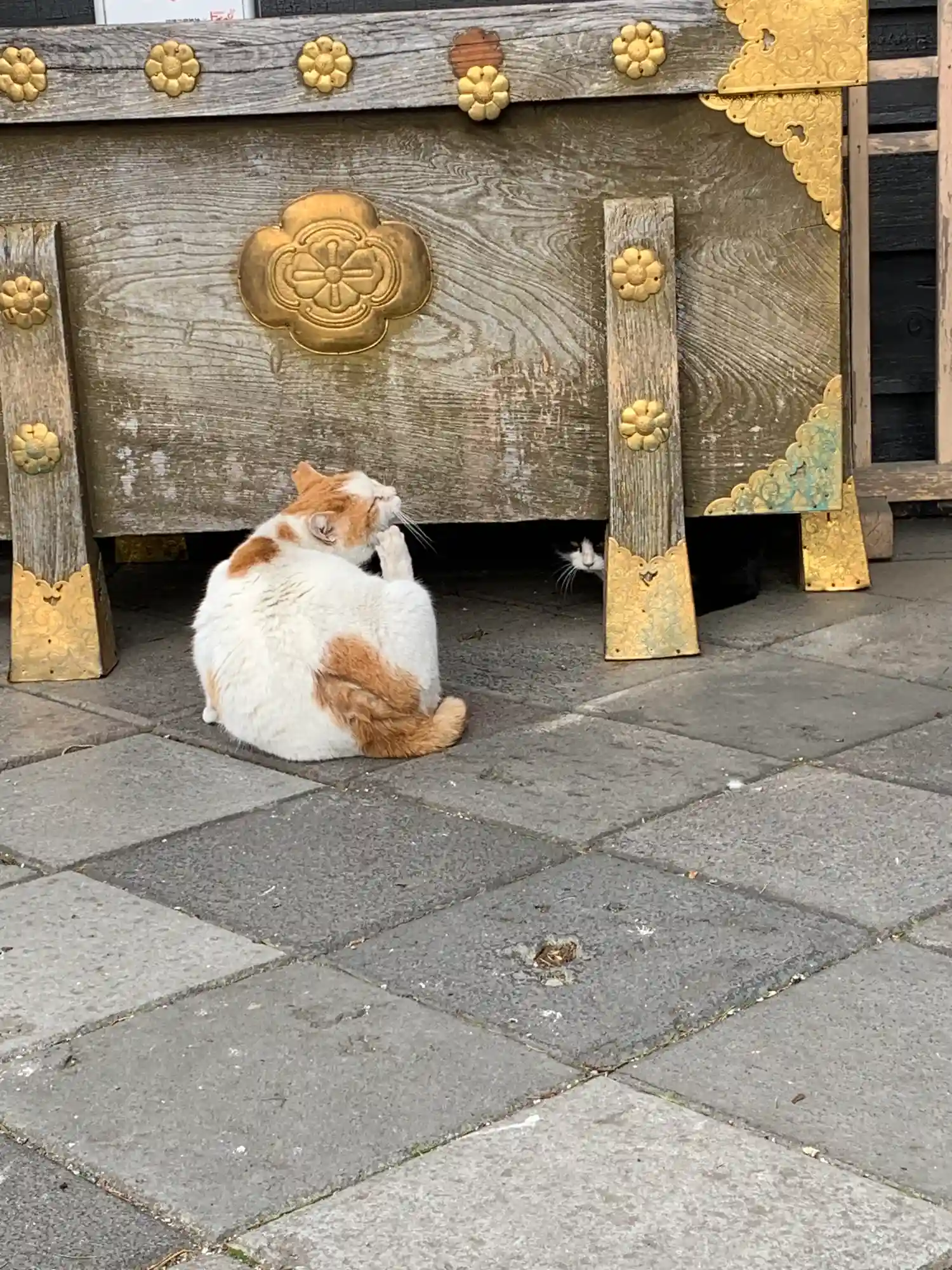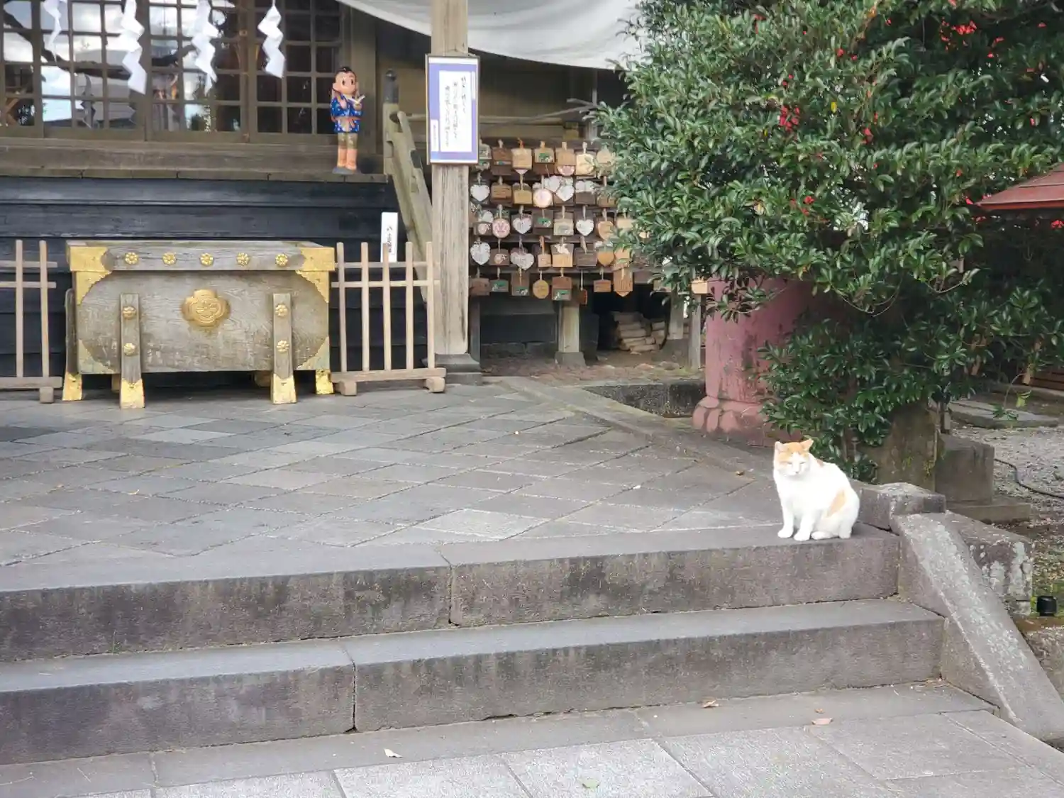 賽銭箱の下に 猫^^